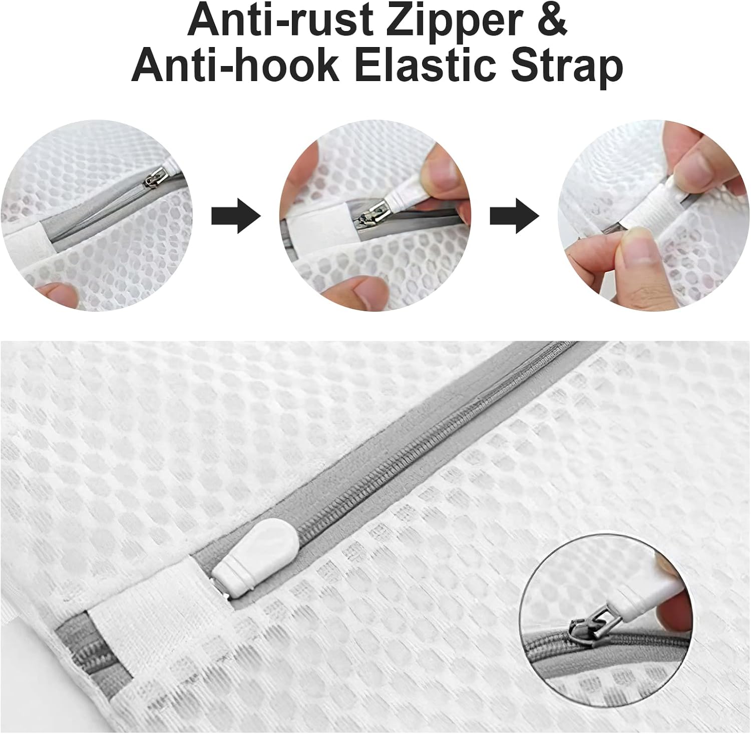 - 【Warm tips】 About 70% of the delicates laundry bag should be filled with clothes. Do not load the washing machine too full, it has a better decontamination ability when it is filled with 70% clothes. Please do not pull the zipper on the mesh laundry bags to the end to prevent the zipper from falling off.