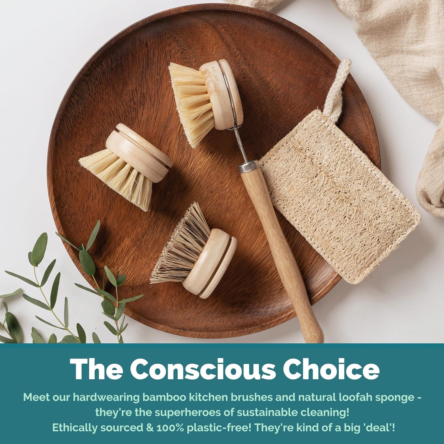 - 🌿 A BETTER WAY TO CLEAN — NATURALLY: Our Bamboo Dish Brush Set includes everything you need to upgrade your cleaning routine. With an ergonomic handle and 3 replacement heads, you can switch between a powerful pot and pan scrubber, a gentle vegetable brush, and a flexible all-round kitchen tool. Complete with a biodegradable loofah sponge, it’s a plastic-free solution that’s as versatile as it is sustainable.
