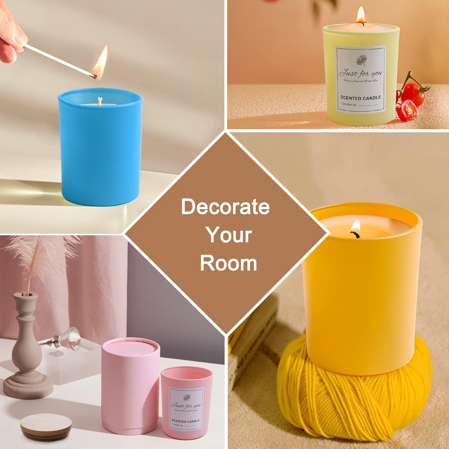 - Buy it and you will get: 15 pack glass candle jar that contain 3pcs pink candle jars 3pcs blue 3pcs ivory yellow work and 3 pcs orange &3 pcs white jars for your handmade candle work. Also you will get 24 candle making labels. A Great Value Buy!