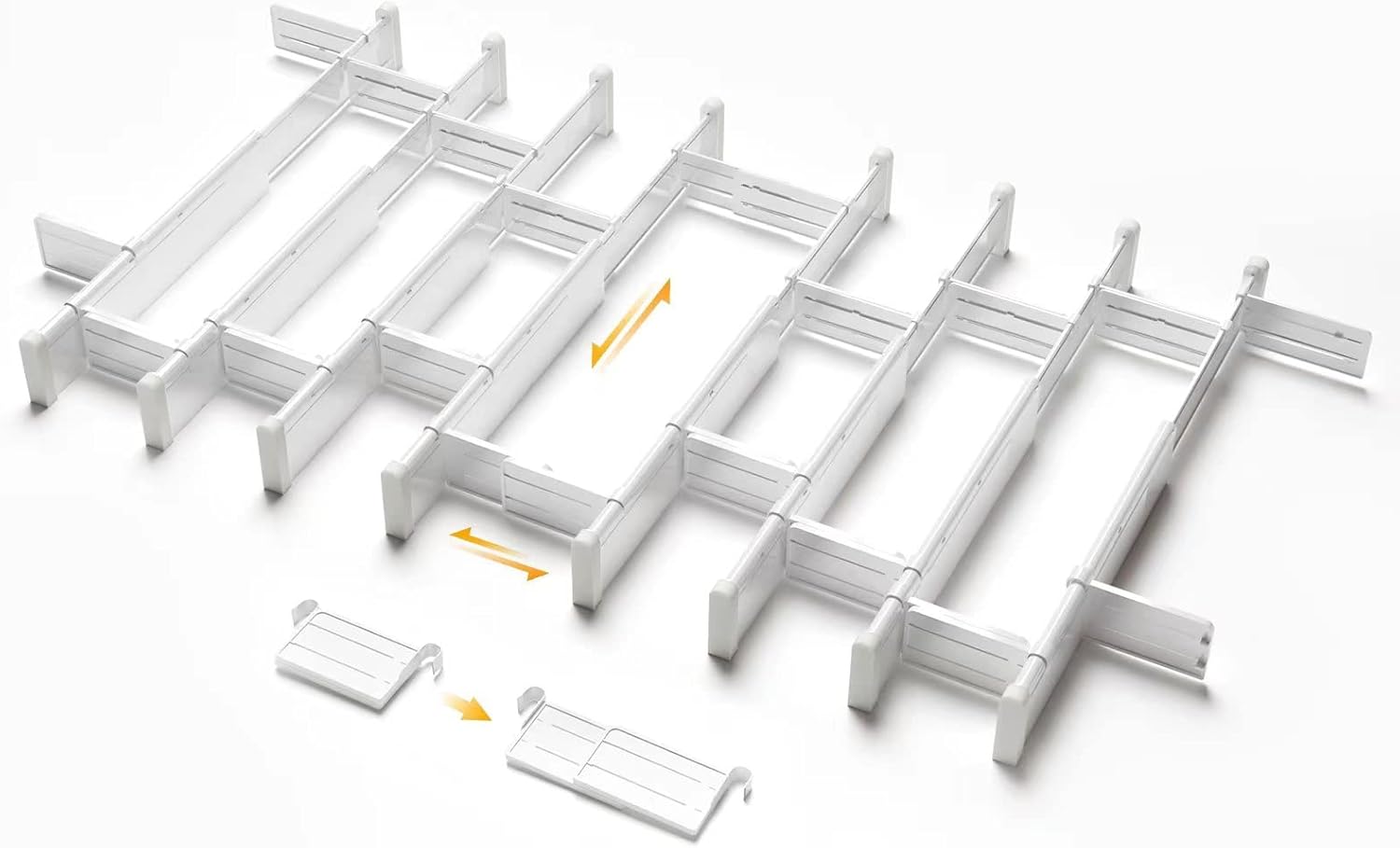 - Custom Free Combination: 8 PACK are 8 long dividers and 16 short dividers. After maximum stretching, they can be used in a 22.8" * 48" drawer. Each long divider is 12.9"-22.8". Please purchase a suitable set after measurement. The ingenious short dividers can also be disassembled into two small pieces