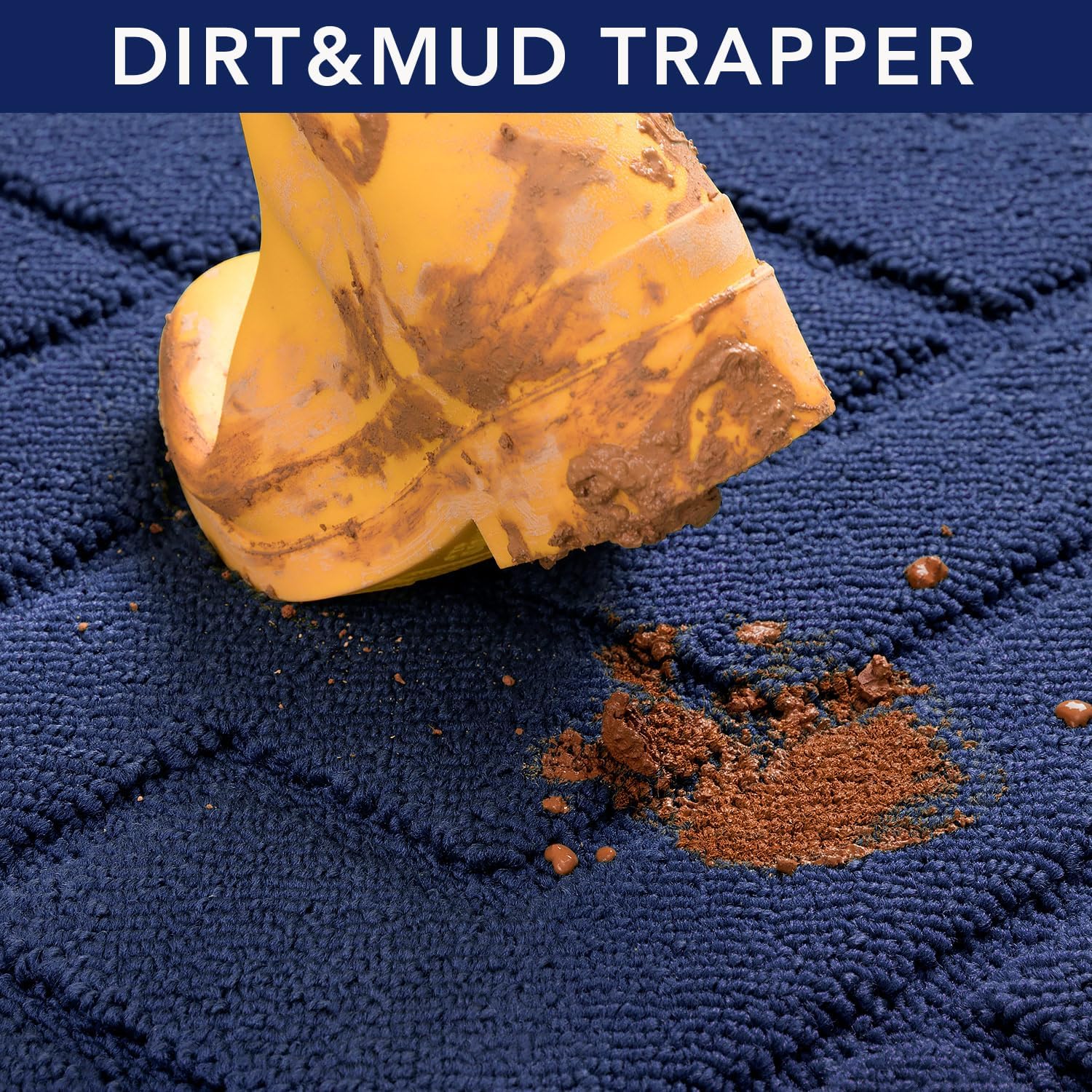 hicorfe Front Door Mat Outside Entrance,36"x59" Absorbent Muddy Dirt Resist Welcome Door Mats Outdoor Indoor,Stain and Fade Resistant,Non Slip Backing Entry Mat Doormat for Entryway(Navy Blue)