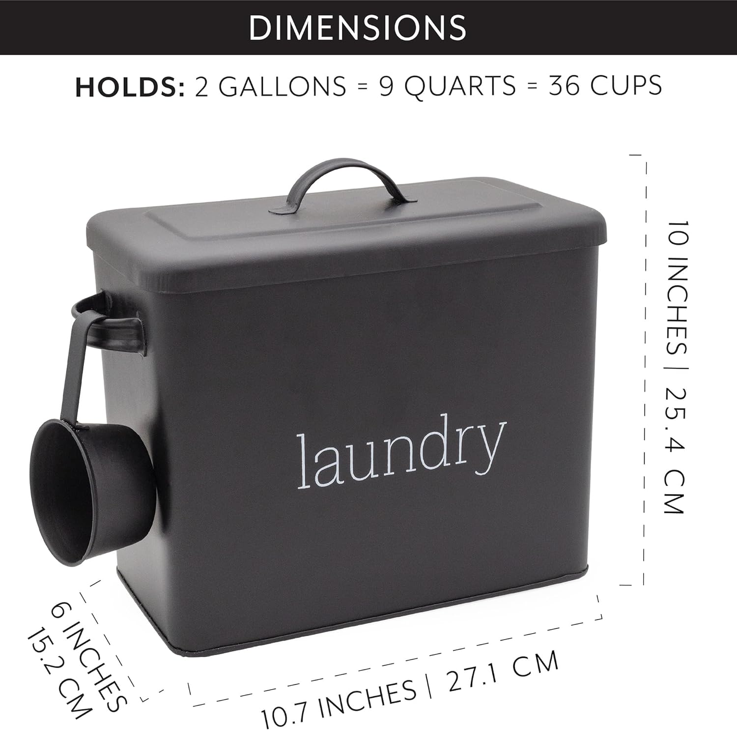 AuldHome Design Enamelware Laundry Powder Container (Black), Enamelware Detergent Bin w/ Scoop