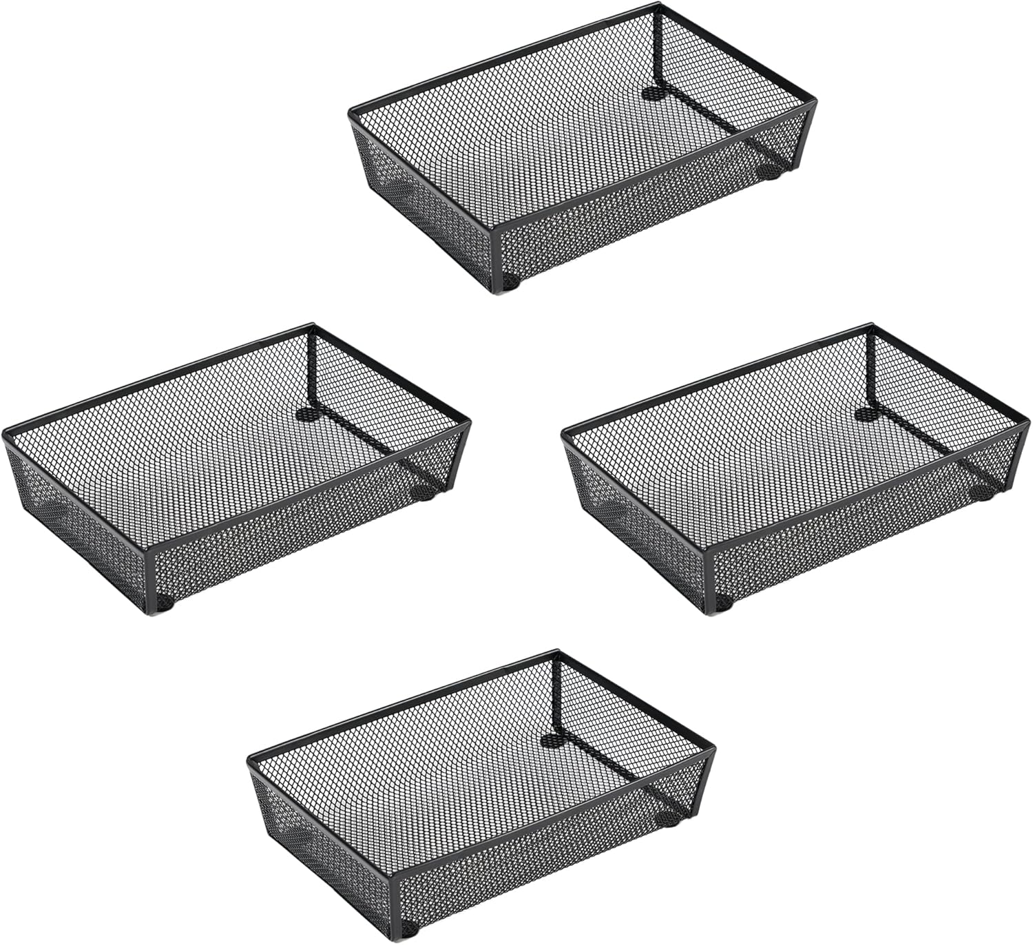 BYCY Silverware Drawer Organizer, Mesh Utensil Organizer for Kitchen Storage, Black Steel Metal Mesh Tray for Flatware Fork Spoon Knife (9x6-4P-Black)