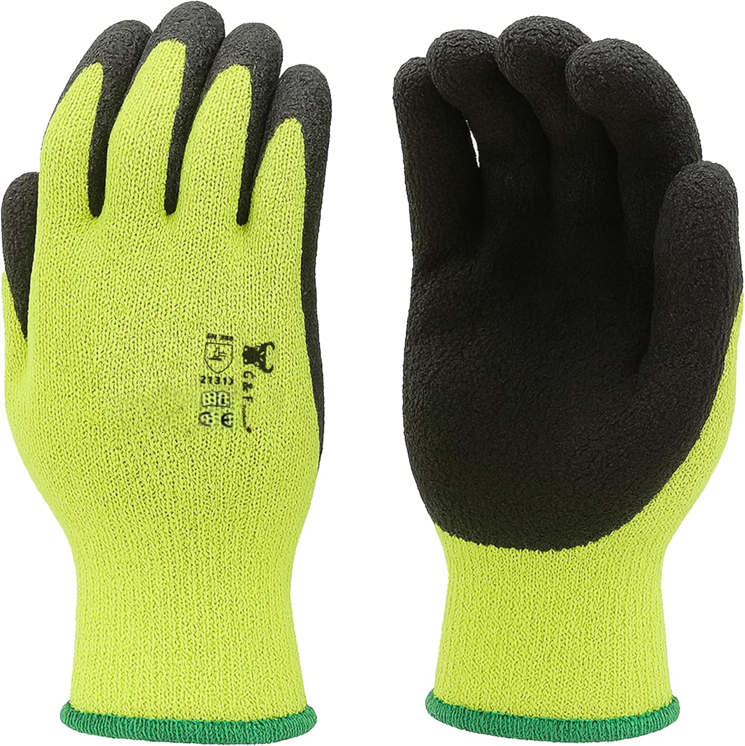 G & F Products G & F 1516 12 Pairs Pack Premium High Visibility Work and gardening Gloves for Men and Women. MicroFoam Textured Coated Palm and Fingers Gloves for Gardening Work, Size Small, Green