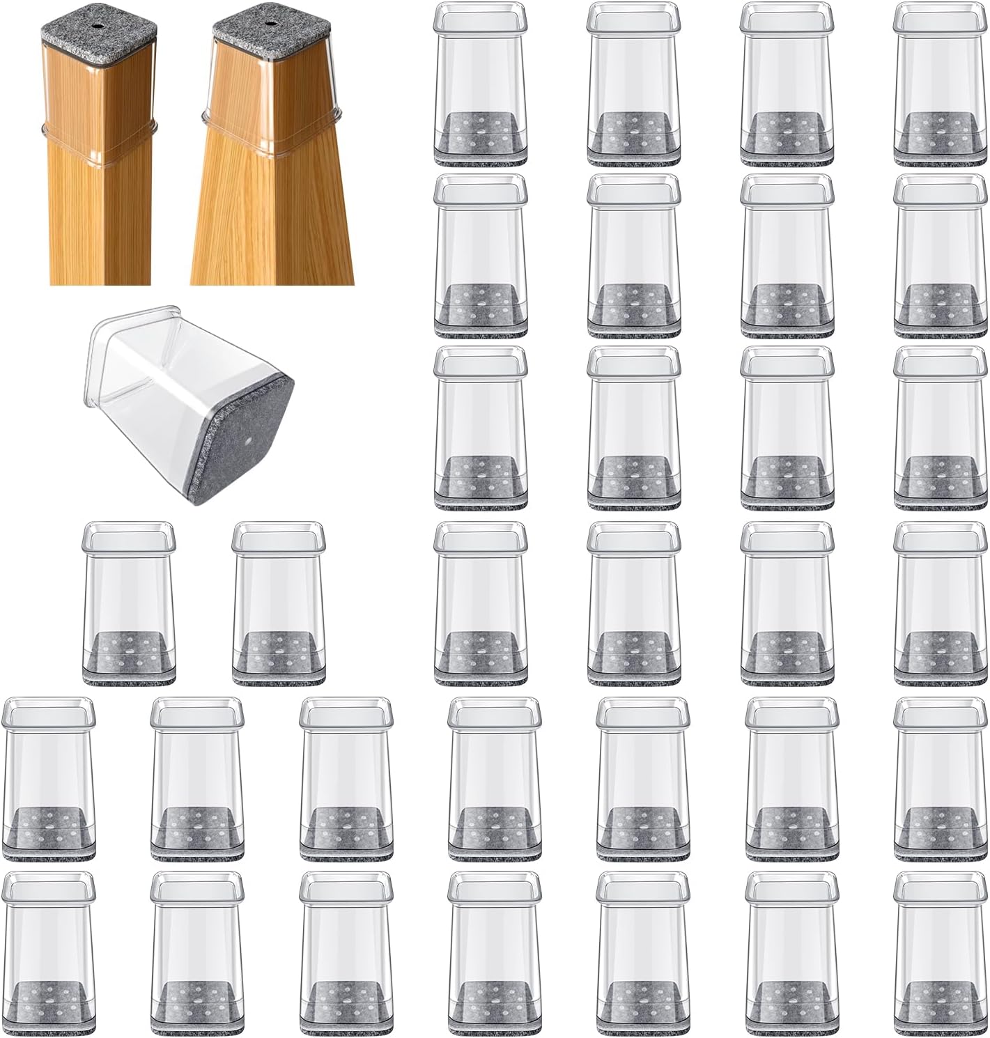 - 【The felt pad will not fall off】The package includes 32 pieces. Our upgraded Square silicone chair leg cover is equipped with a felt pad. We combine the felt and silicone into an integral part.