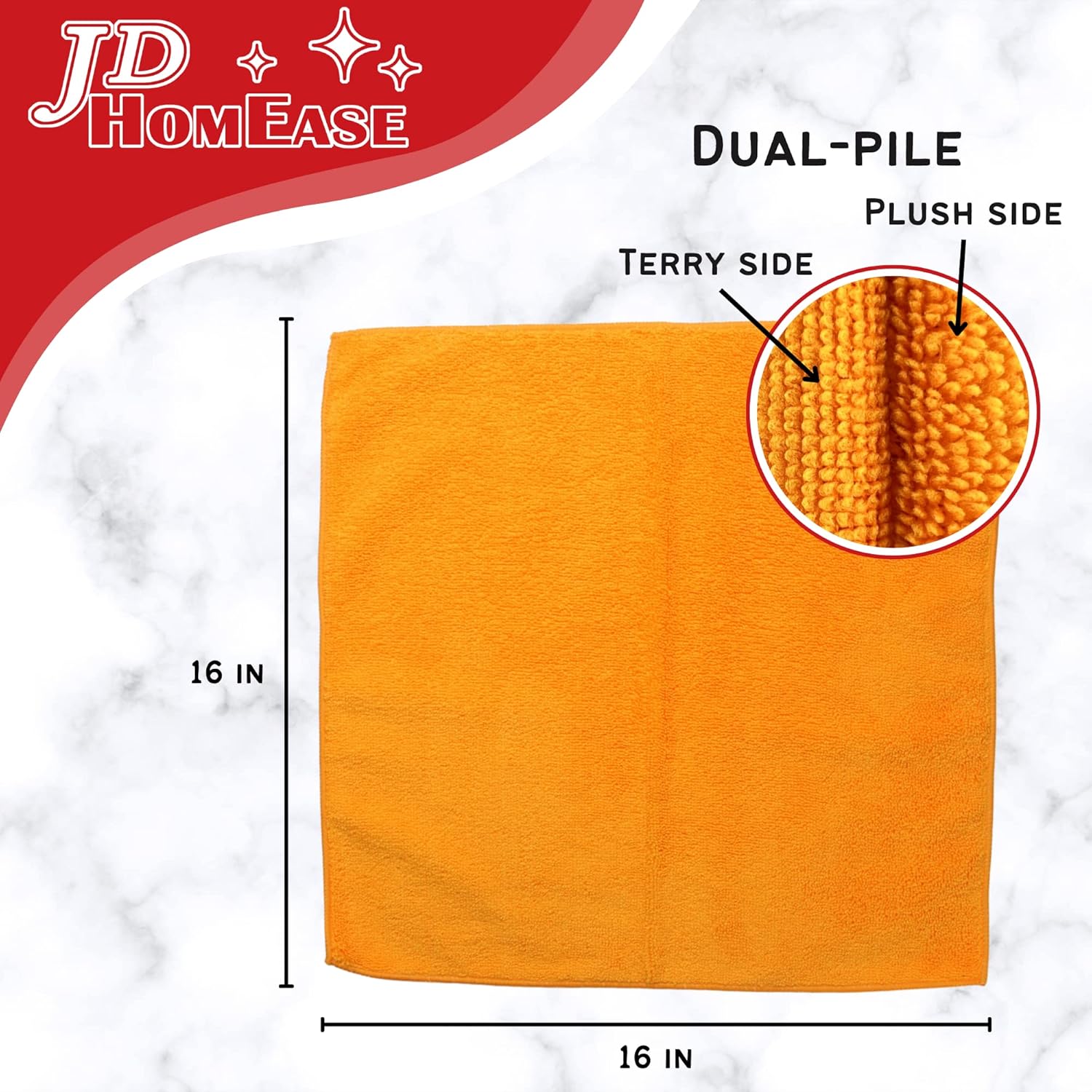 Microfiber Cleaning Cloths,24 Pack, 16"x16", All-Purpose, Softer, Highly Absorbent, Lint-Free, Reusable, Washable Pro Towels, Orange, for House, Kitchen, Bathroom, Car, Office