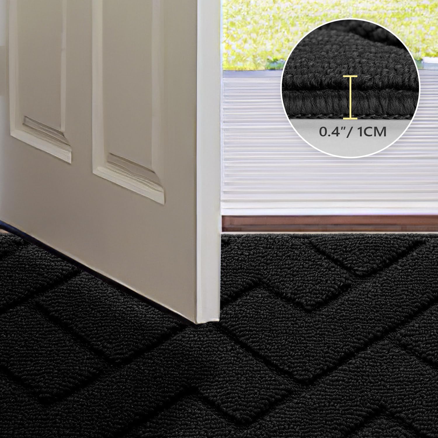 hicorfe Front Door Mat Outside Entrance,32"x40" Absorbent Muddy Dirt Resist Welcome Door Mats Outdoor Indoor,Stain and Fade Resistant,Non Slip Backing Entry Mat Doormat for Entryway(Black)