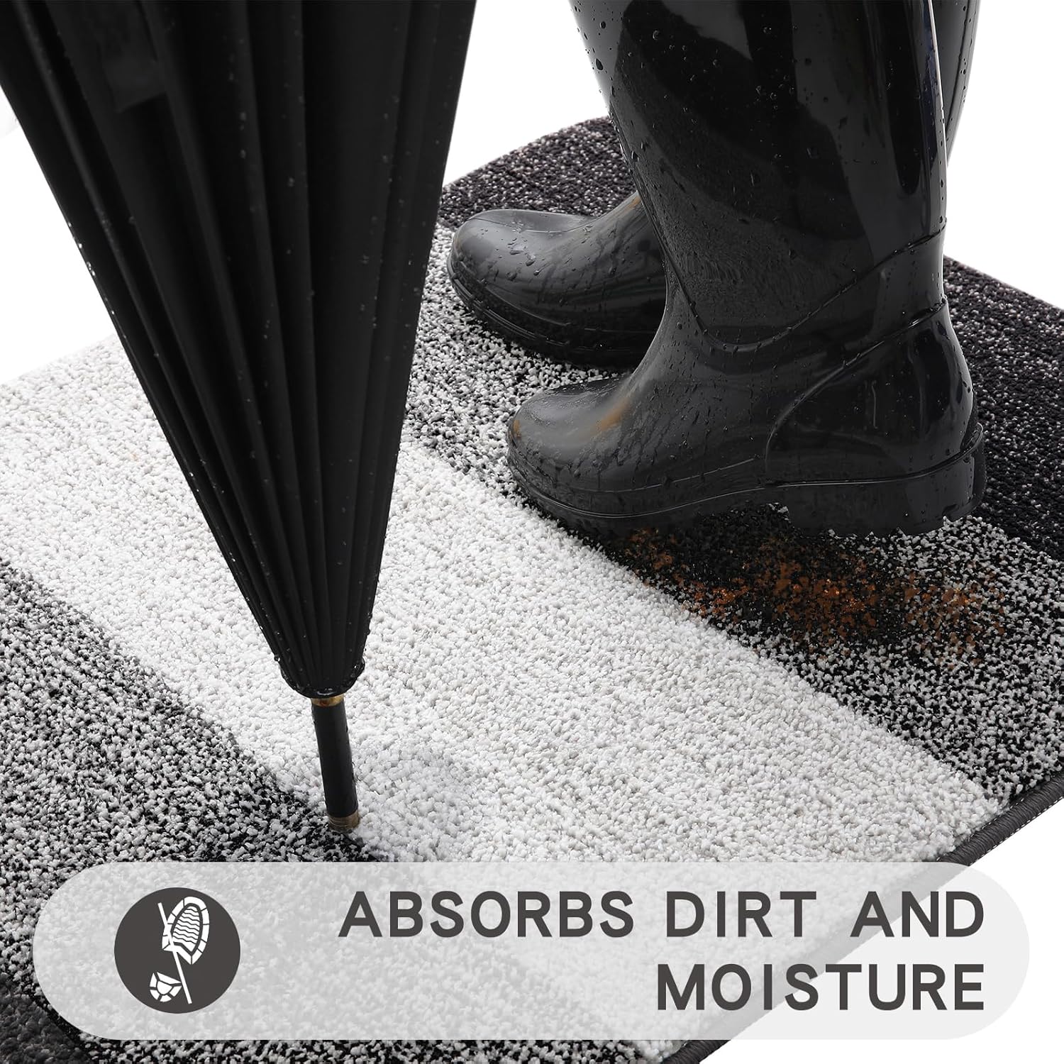 - ABSORBS MOISTURE AND DIRT:Kitinjoy indoor doormats effectively trap water, mud, and dirt. Countless polyester fibers keep indoor areas clean, and dry. Even rain, snow, or muddy weather can protect the floor from spills or stains.