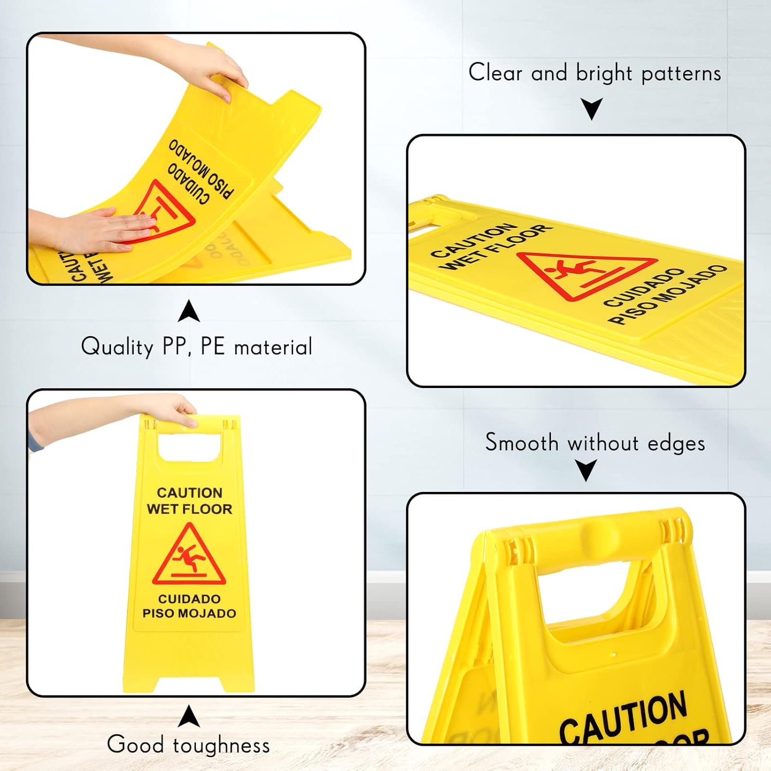- Quality Product: the caution wet floor sign is made of PP, PE material, a hard foldable three dimensional sign, which is heavy enough and not easy to overturn; The printing is clear and bright, which can play a good alert role