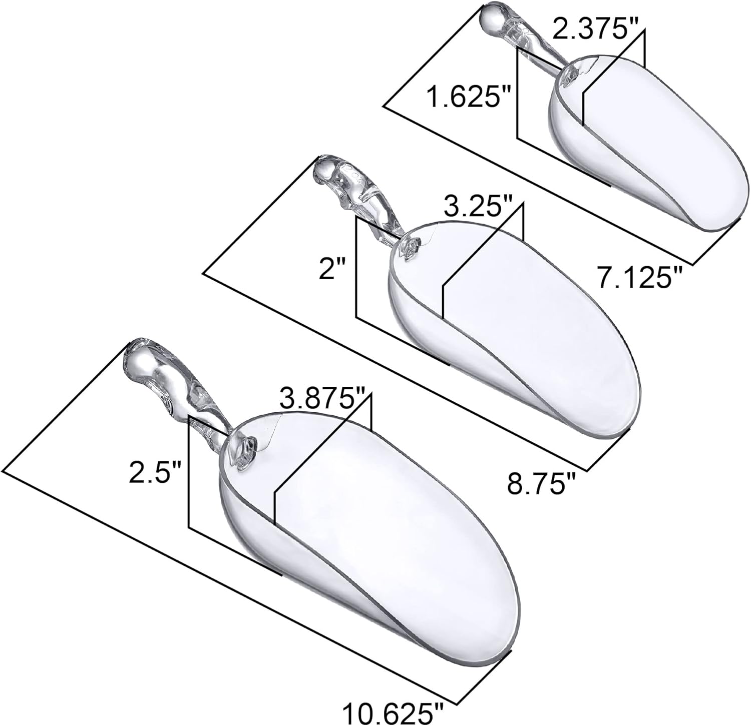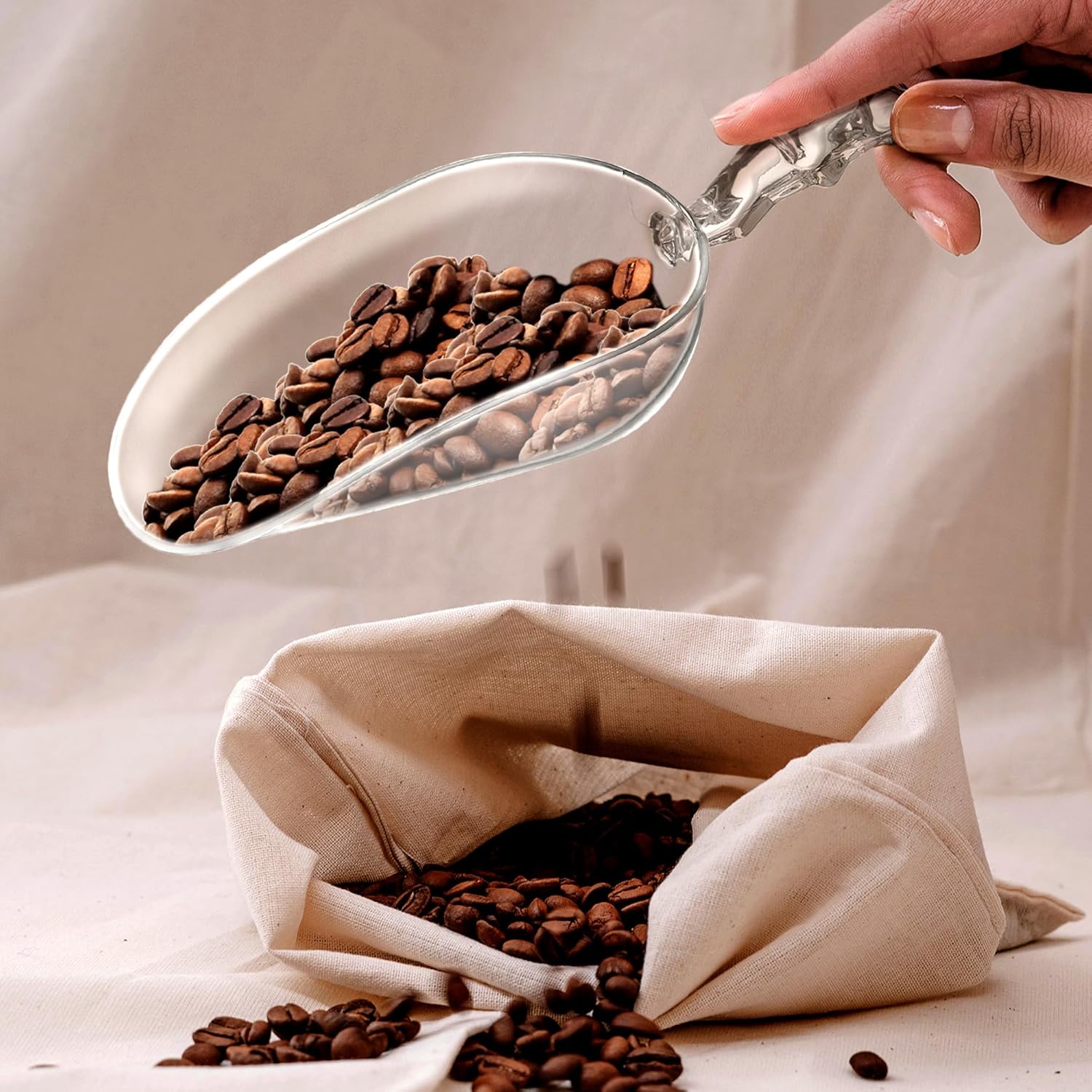 - [MULTIPLE USES] The scoop is good for vairous uses: ice cubes, beans, flour, popcorn, candy, baking ingredients, cereal, dry goods, pet food, bath salts, and more. A handy tool for your kitchen, bathroom, laundry room and bar.