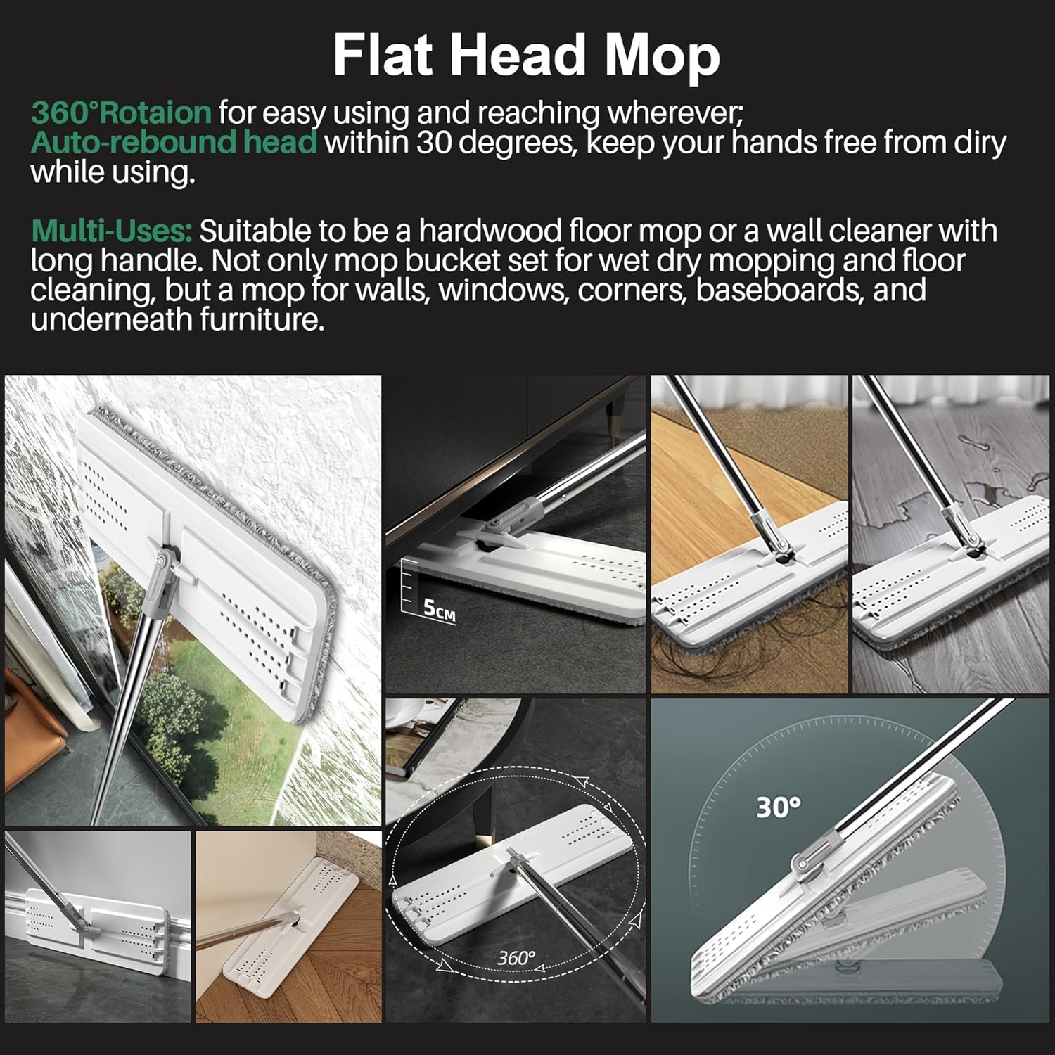 - [Cleaning Mop with Bucket] A self-cleaning mop reduces your time and labor, allowing the bucket to handle more than you can on your own. Mopping is simplified between the mop and bucket, keeping you away from dirty water; all you need to do is insert and pull the mop
