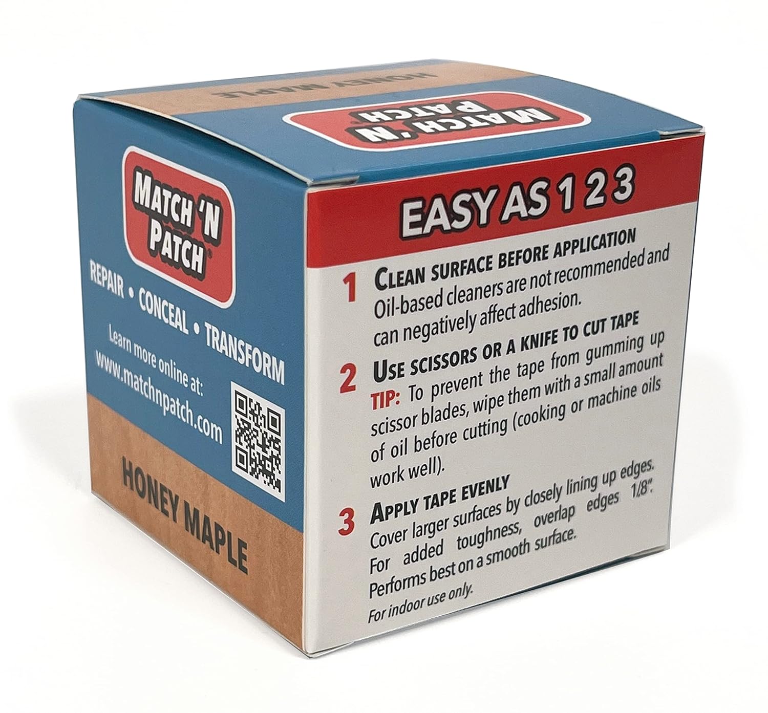 - MATCHING OPTIONS AVAILABLE: The Honey Maple pattern is part of a broader collection, available in a larger size for extensive repair needs. Visit the MATCH βN PATCH Store to explore all 13 wood tape shades and find the perfect match for your project.
