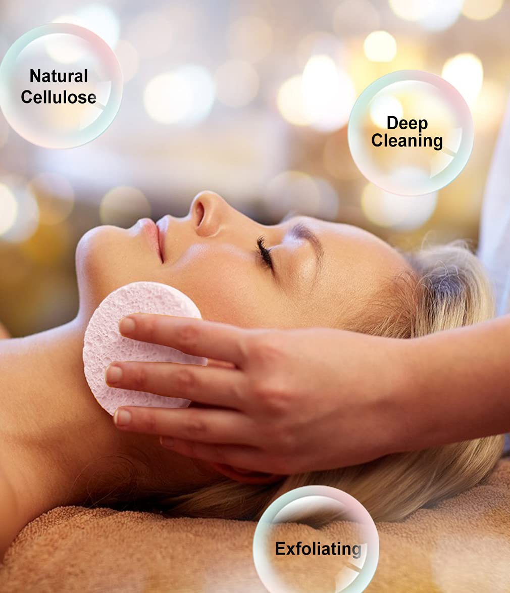 - 【Package & Size】: 50-count little round cellulose facial sponges. Pink+White, 2.8" dia. x 0.32" thick after hydrated