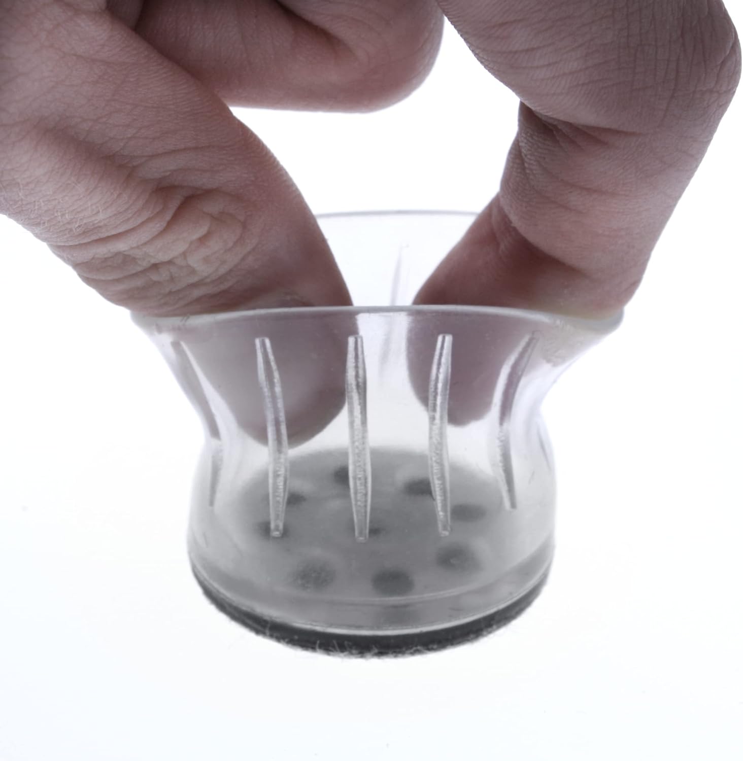 - Features impenetrable steel plate β Clear chair socks feature a steel plate at base of transparent sleeve / above felt that prevents furniture legs from puncturing through making them great floor protectors for metal furniture legs, metal chair feet, and a wide range furniture.