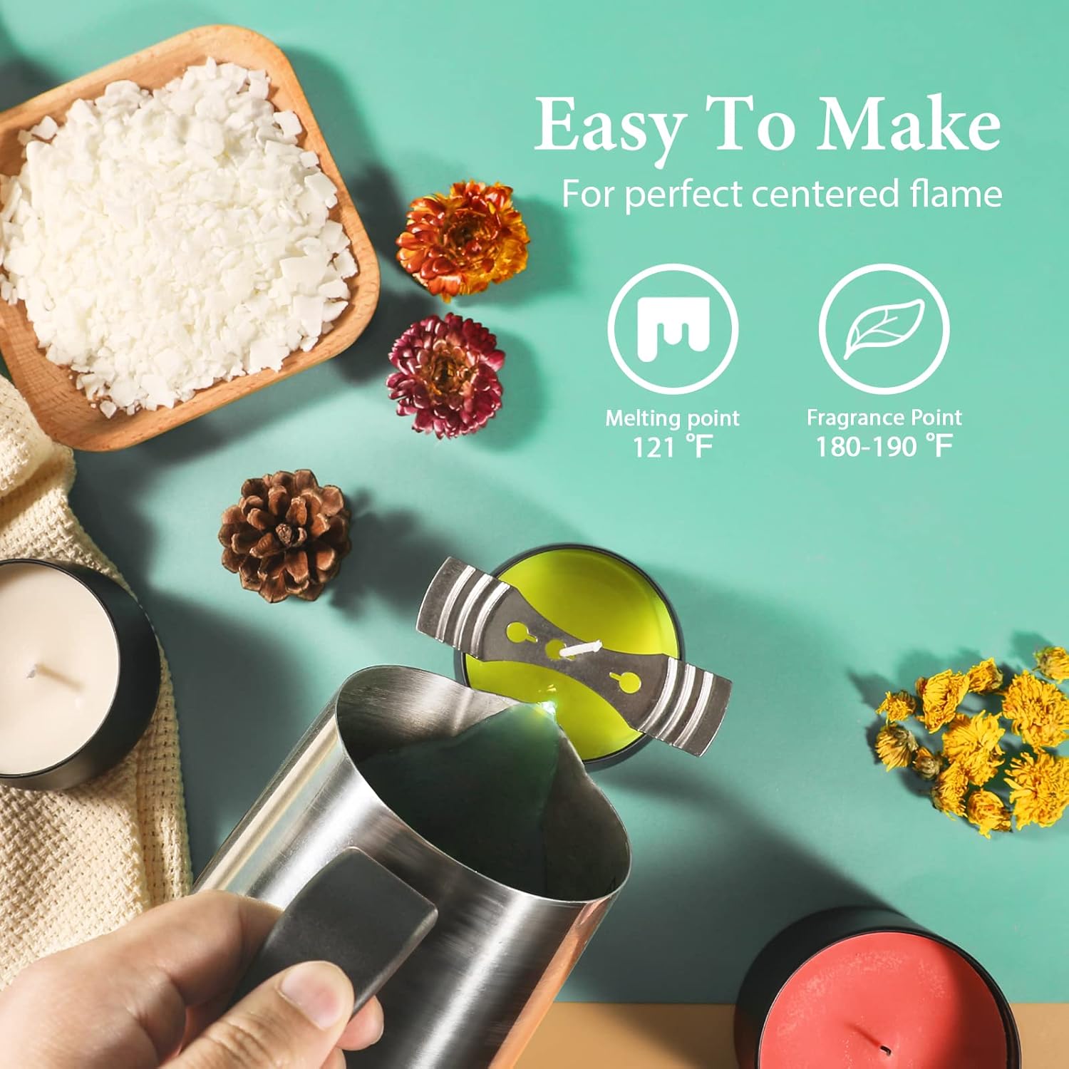 - 【CANDLE MAKING KIT】soy wax DIY kit includes all the essential materials to get you started crafting beautiful candles. 1x 2lb bag of natural soy wax (flake form) and 20x pre-cut candle wicks, 20 wick stickers and 2x centering devices.