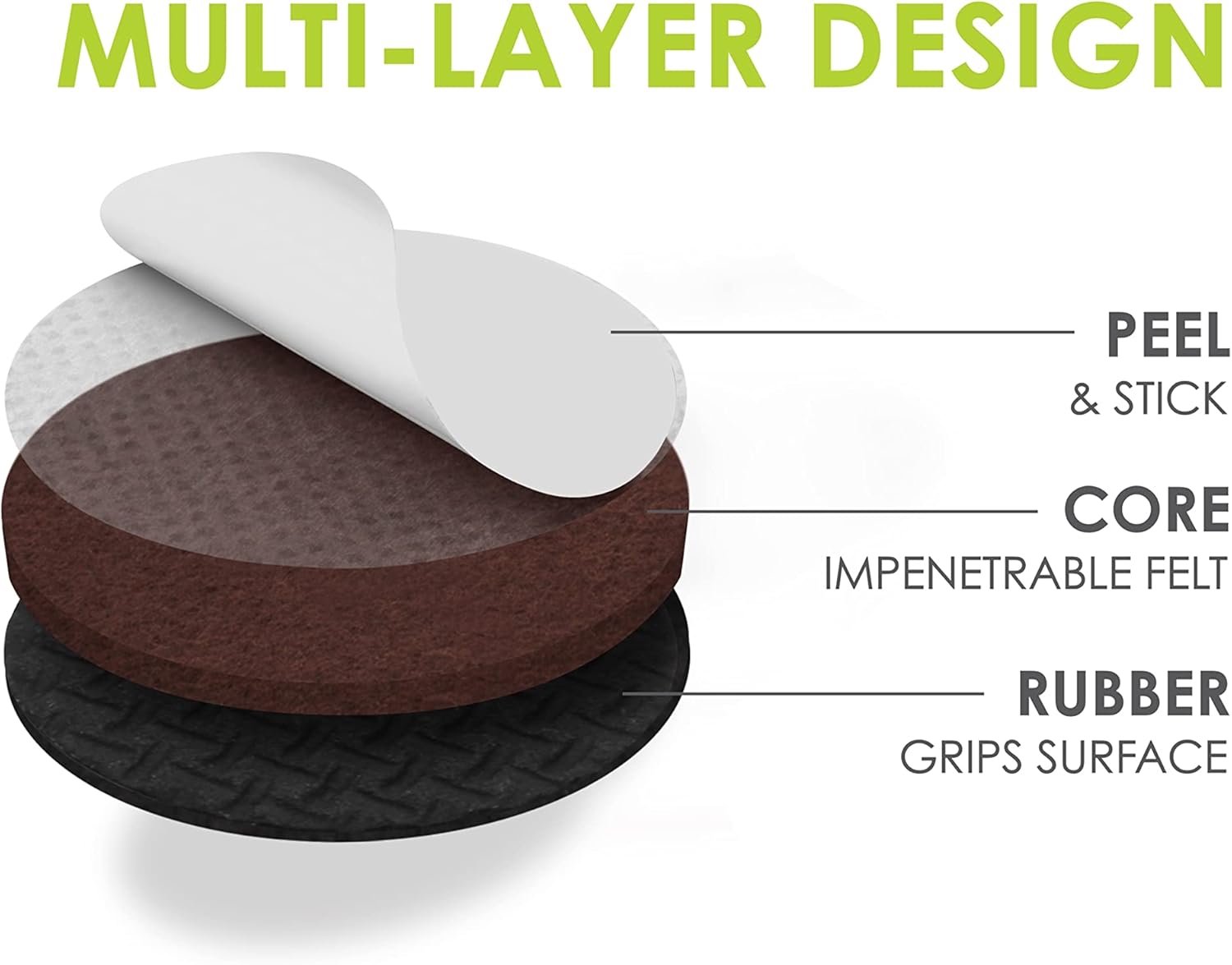 - Durable puncture proof furniture pads – Gorillapad premium furniture pads feature a specially formulated anti slip rubber base layer that provides maximum grip between furniture and flooring and have a puncture proof solid felt pad core for durability (covered by 5 year free replacement warranty).