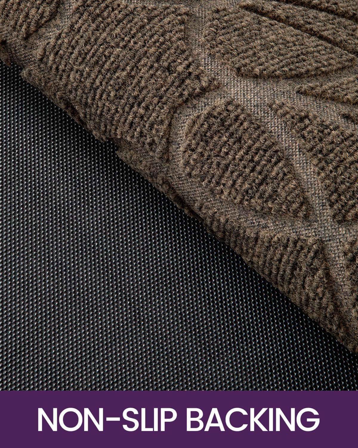 DEXI Front Door Mat Outside Entrance, Heavy Duty Non Slip Low Profile Doormat for Entryway, Trap Dirt and Moisture Welcome Mats, Easy Clean, Patio, Garage, 5x3, Brown