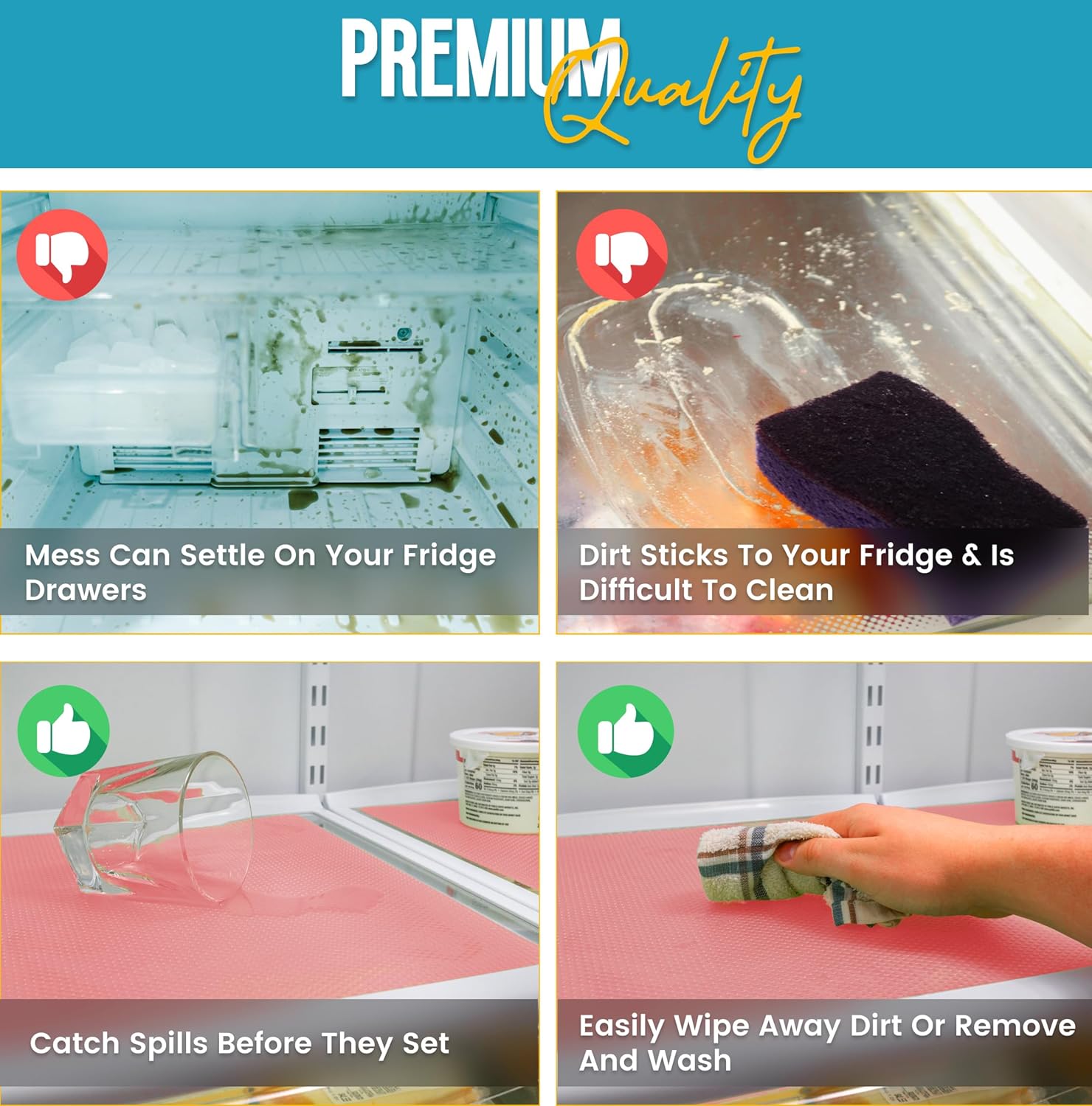 - KEEP YOUR FRIDGE CLEAN: Protect your shelves against spills with our refrigerator liners—an essential drawer liner and cabinet liner alternative. They keep your fridge pristine by preventing drips and stuck-on food, saving you time and effort on cleanup. Perfect for any household essentials in your new home