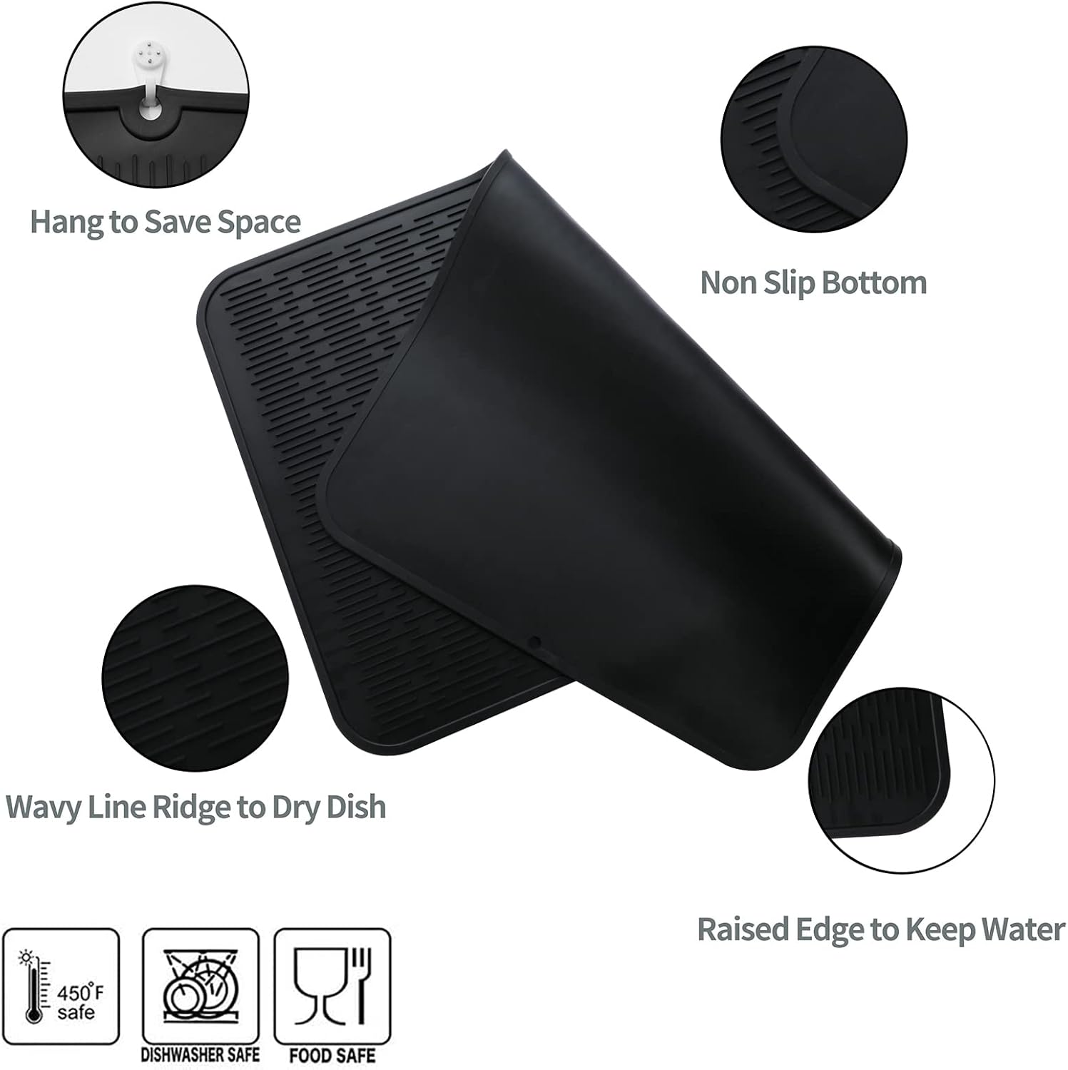 Silicone Dish Drying Mat for Multiple Usage,Easy clean,Eco-friendly,Heat-resistant Silicone Mat for Kitchen Counter or Sink,Refrigerator or Drawer Liner Black 3XL 28 inches x 18 inches