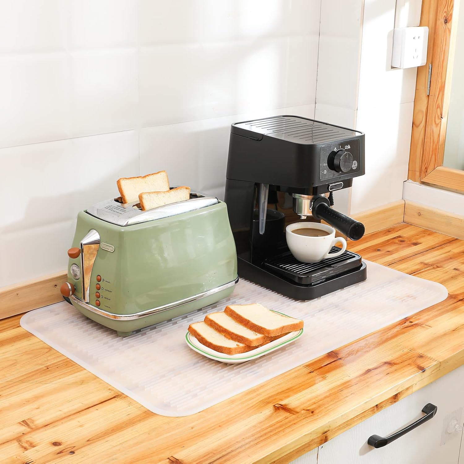 Silicone Dish Drying Mat for Multiple Usage,Easy clean,Eco-friendly,Heat-resistant Silicone Mat for Kitchen Counter or Sink,Refrigerator or Drawer Liner Translucent 3XL 28 inches x 18 inches