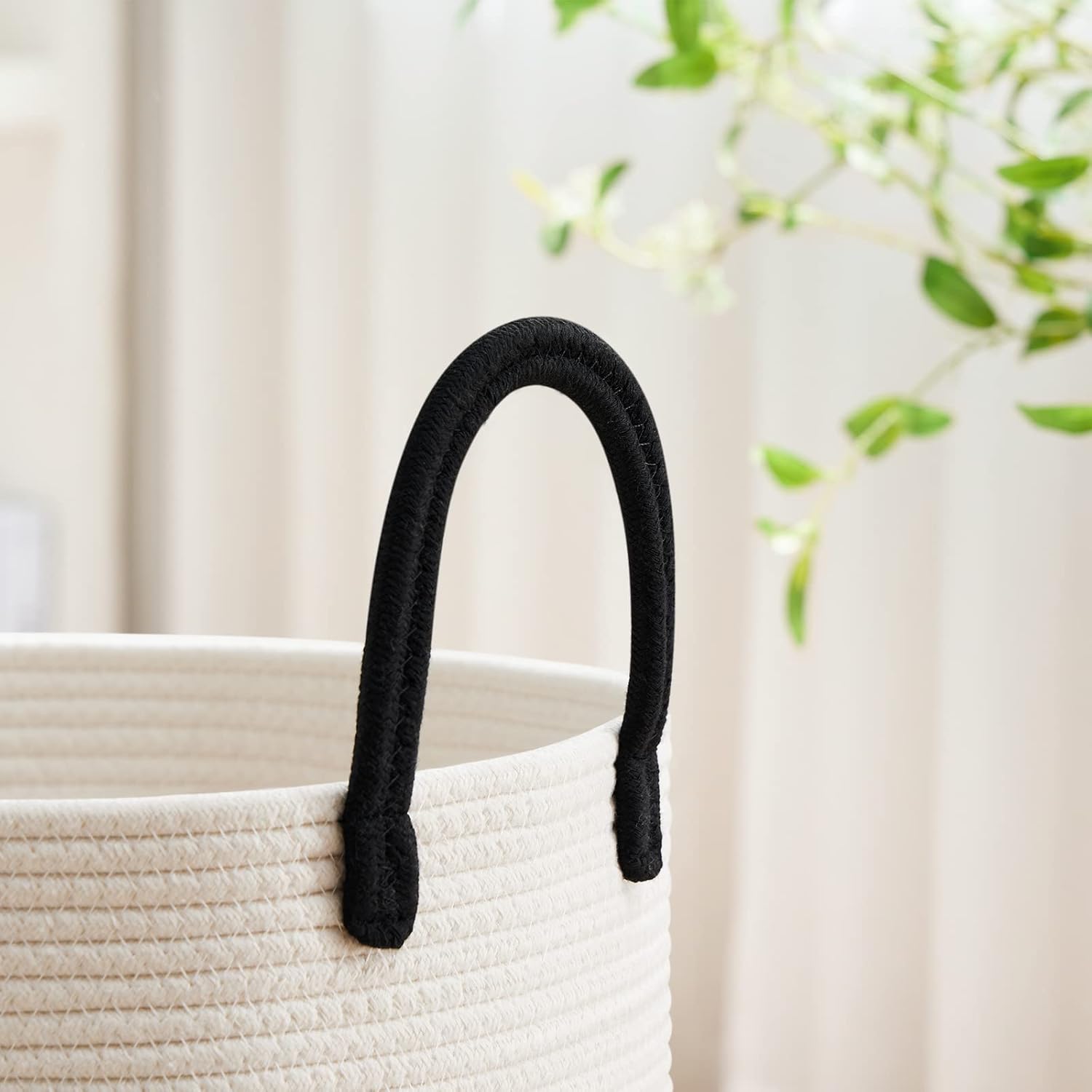 VIPOSCO Large Laundry Hamper, Tall Woven Rope Storage Basket for Blanket, Toys, Dirty Clothes in Living Room, Bathroom, Bedroom - 100L White & Black