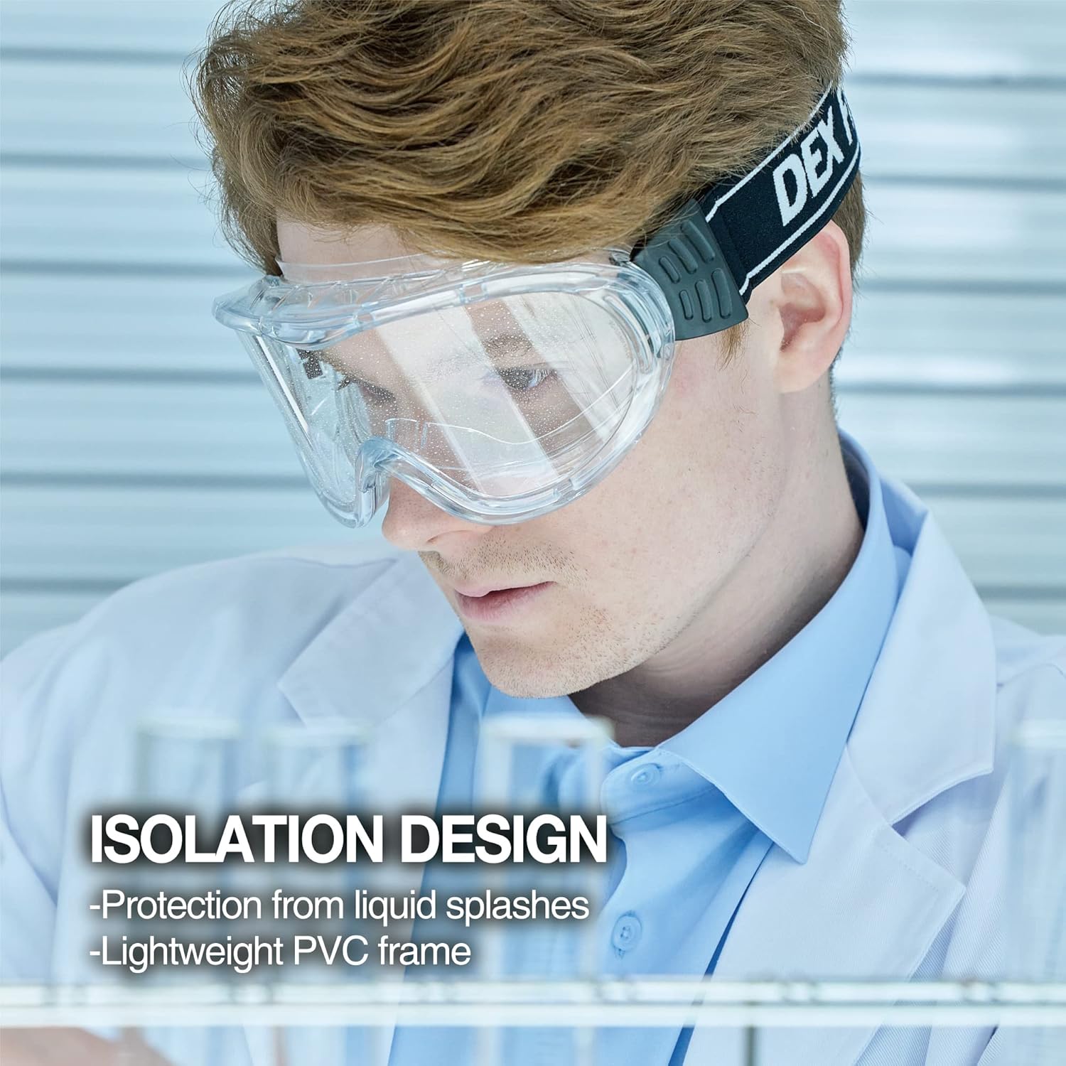 DEX FIT Protective Safety Goggles SG220A; OTG Over Glasses Fit, Anti Fog & Scratch, Z87 Eye Protection for Lab, Science, and Chemistry Work, Indirectly Vented, Adjustable for Women and Men