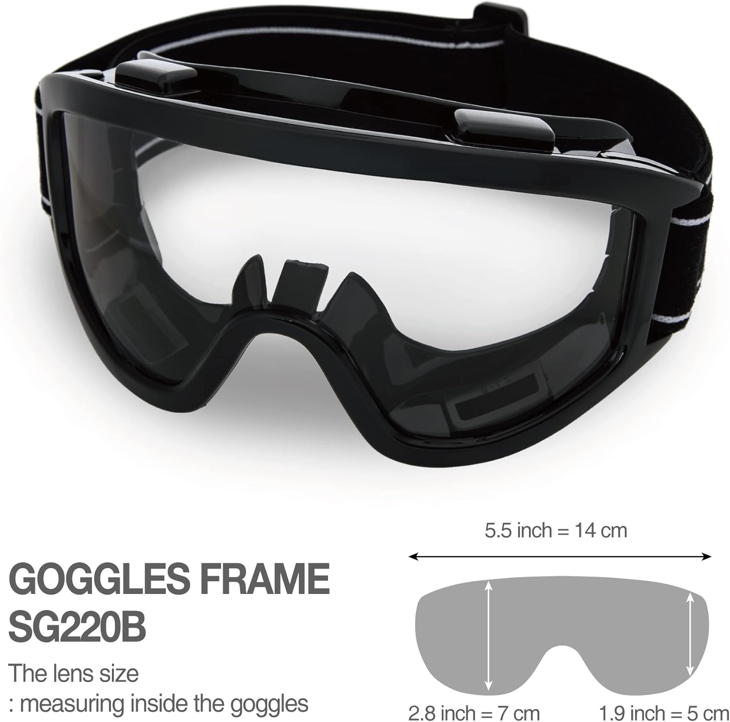 - ANTIFOG, SCRATCH PROOF and UV BLOCKING. SG220B wide-vision goggles were treated with a hard coat to prevent fogging and scratches. They are designed to fit over your prescription eyewear and specs.