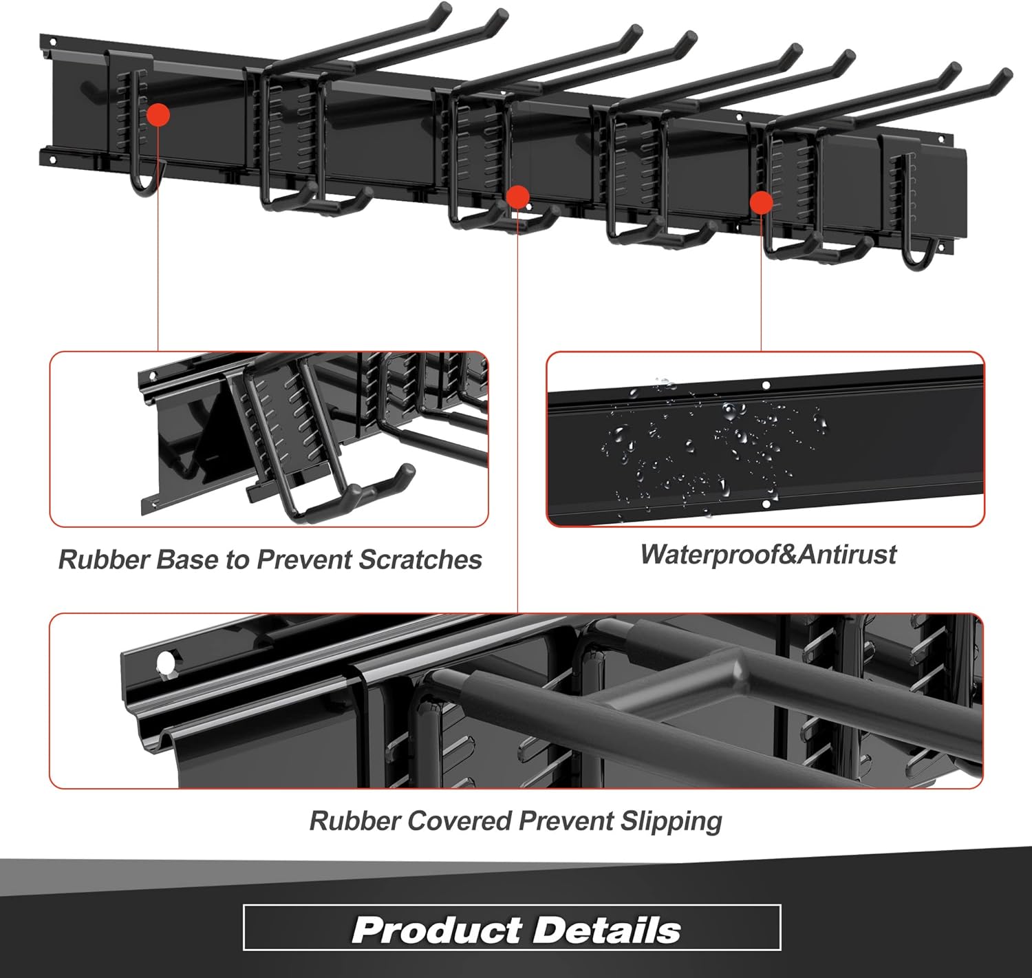 - Heavy-Duty Construction: Made with high-strength steel with powder-coated, this garage storage organizer can support up to 300 lbs, making it perfect for heavy tools and equipment. Resists rusting, chipping and cracking. Comes with 2 slot boards and 6 hooks, providing ample storage space for bikes, sports equipment, chairs, garden tools, shovels rakes, brooms, mops, extension cords, hoses, power tools, and other sporting equipment such as helmets, boots, ice skates, hockey sticks, ski gears etc.