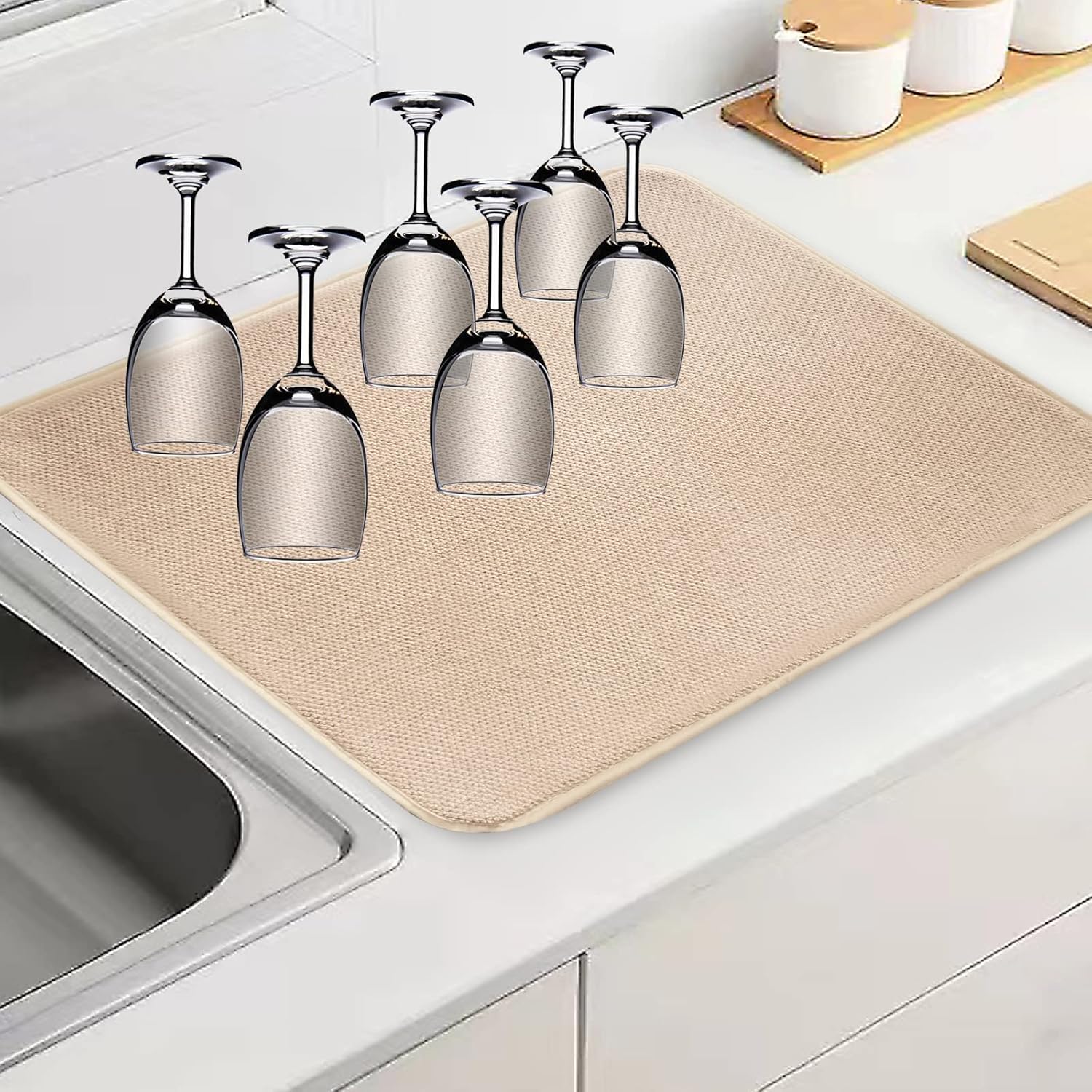 - 【Protect Your Counter】Our drying mats protect your counters from scuffs and scratches, while keeping your kitchen utensils, especially glassware, safe and sound