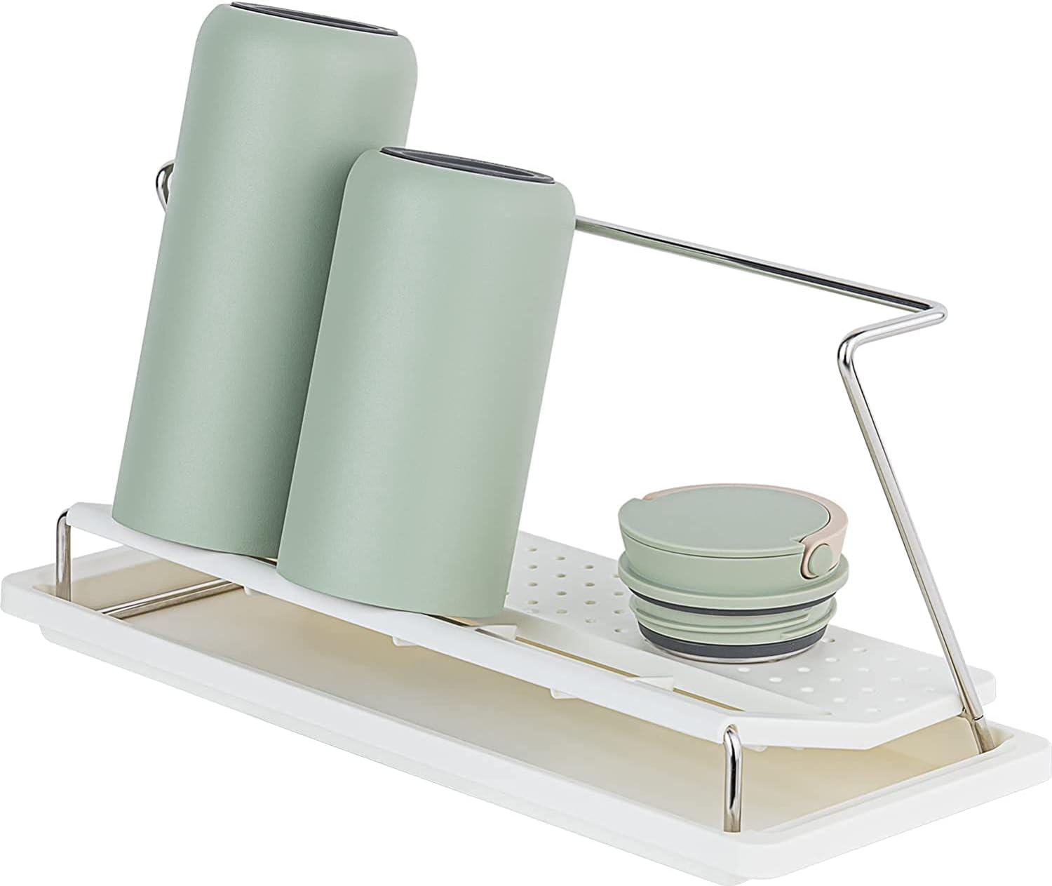 carrotez Bottle Drying Rack, Tumbler Rack with Drain Tray - Narrow and Wide Openings with Various Capacity, Mug Type and Cup Type - White