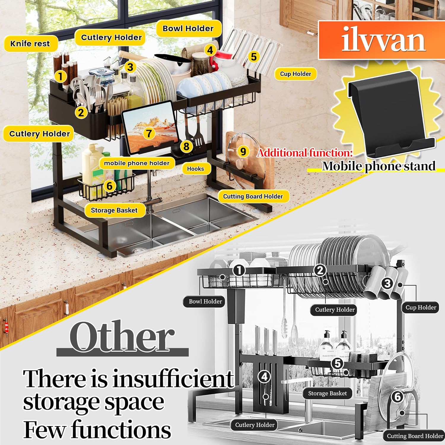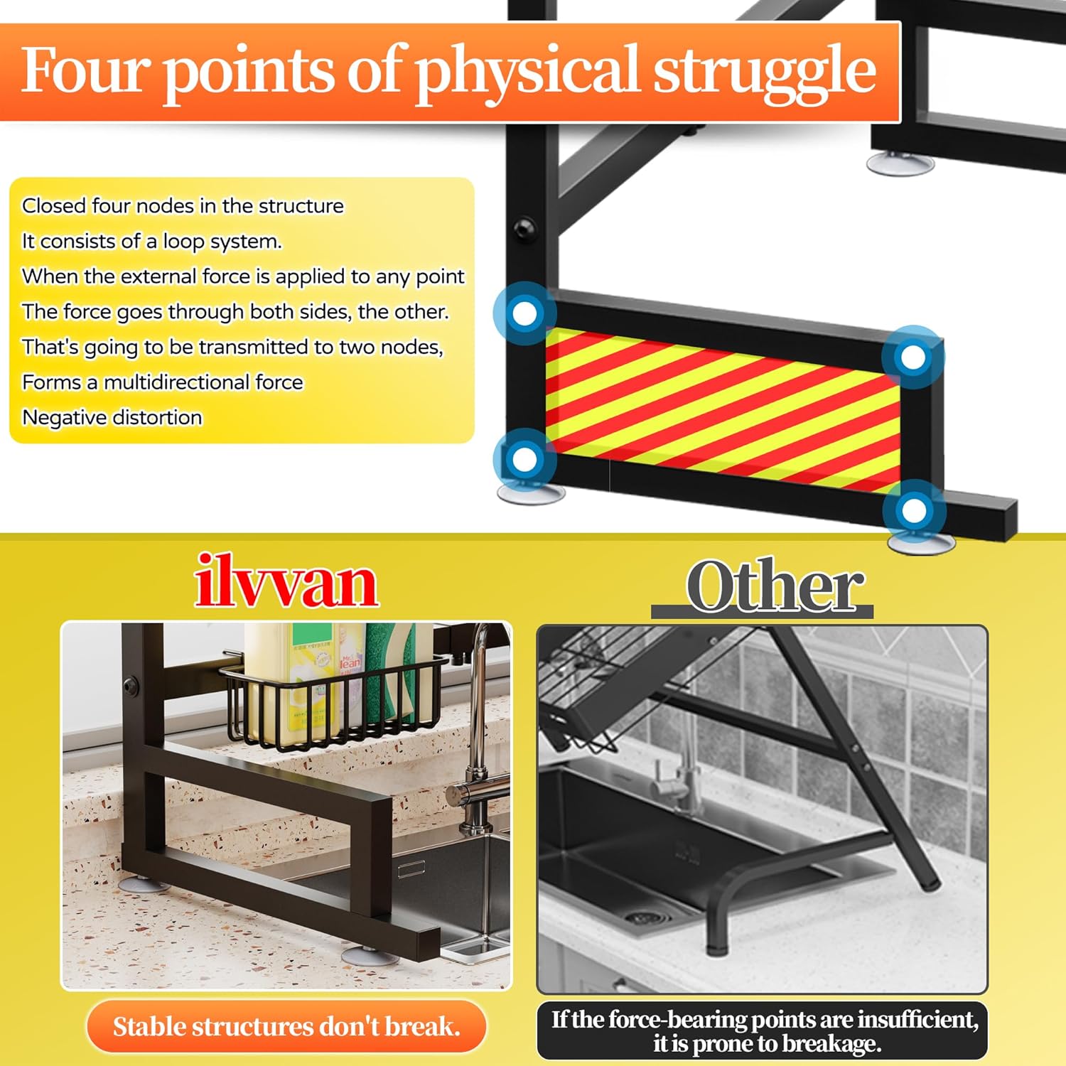 - 【Tips Before Purchase】Please carefully measure the length of your sink at first. Your Sink Length should be ≤35" and if it beyond 35", please choose our another larger over sink dish rack. Also mind the faucet (Height≤17") and the cabinet (another 15 or 20 inches away from the upper cabinet to place the plates), the height of this rack can be adjusted from 19" to 22", so please make sure you measure your faucet and cabinet so that the dish rack doesn’t touch them or get in the way.