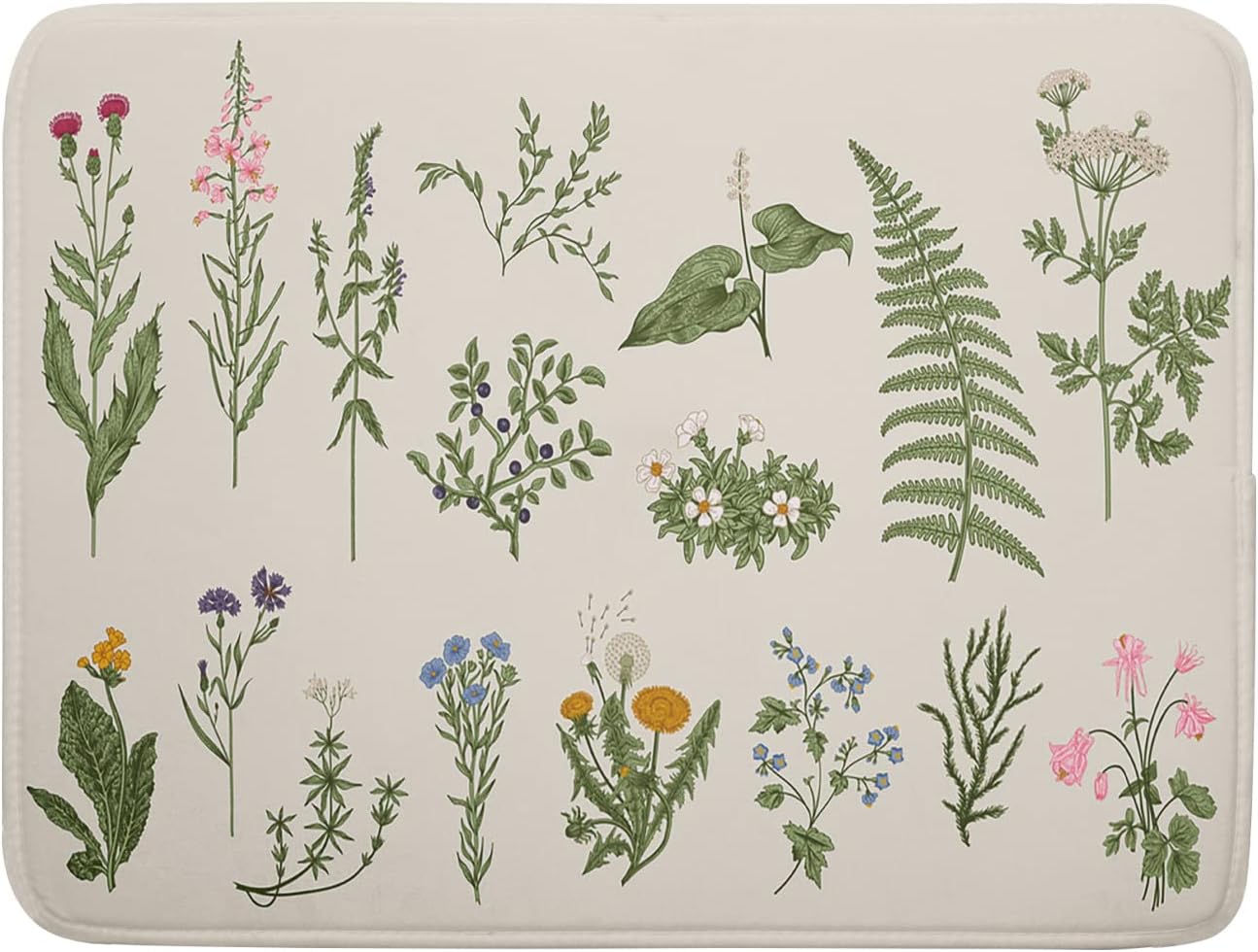 Sage Flower Herbs Dish Drying Mat For Kitchen Counter 16x18 In Green Leaves Microfiber Absorbent Dishes Pad Wild Plant Herbs Drying Pad Dish Drainer Rack Absorbent Fast Dry Kitchen Accessories