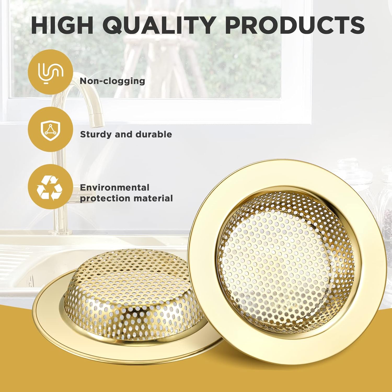 Retisee 2 Pcs Sink Strainer Stainless Steel Kitchen Sink Drain Strainer Basket Cover Mesh Hair Food Catcher, Large Wide Rim of 4.4 Diameter(Gold)