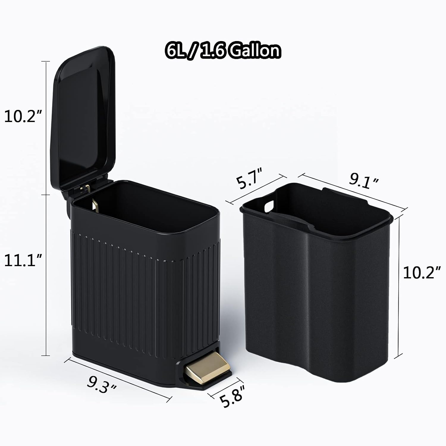 - Slim Design: The rectangular trash can is the perfect size for inside cabinets, under counters, under sinks, and other small narrow spaces; such as bathroom, bedroom, office, toilet, kids room, powder room, farmhouse, apartments, campers, RVs, dorm rooms, etc