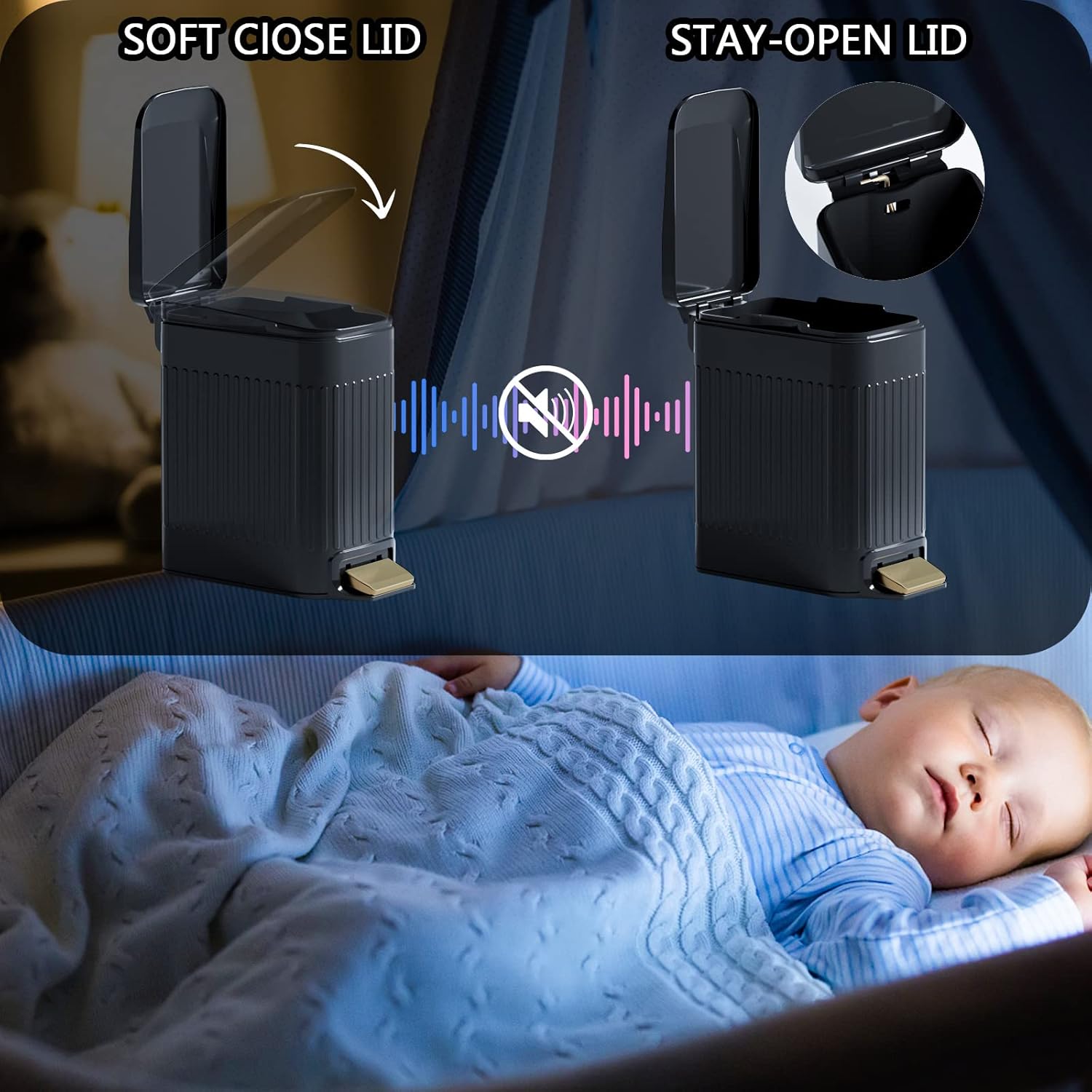 - Silent Soft Close & Stay Open Lid: Stainless Steel trash can, the lid will automatically close after you press the pedal to open the lid, very quiet, no loud noise, donโt worry about disturbing the rest of your family; Push the lid up by hand to hold the lid at 90ยฐto keep it open