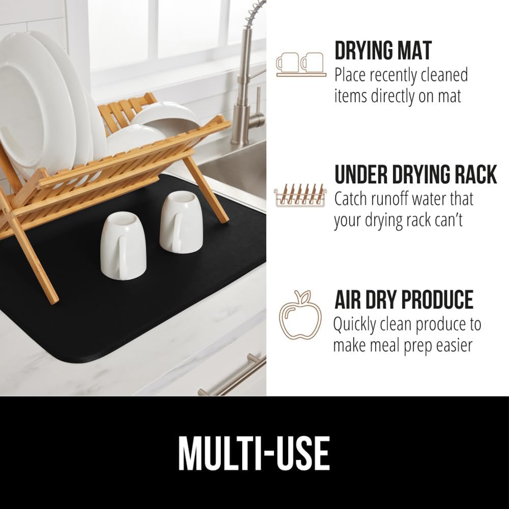 GORILLA GRIP Ultra Water Absorbent Microfiber Dish Drying Mat, Quick Dry Thick Mesh, Slip Resistant Pad for Sink Dishes or Under Rack, Kitchen Counter Accessories, 16x18, Machine Wash Mats, Black
