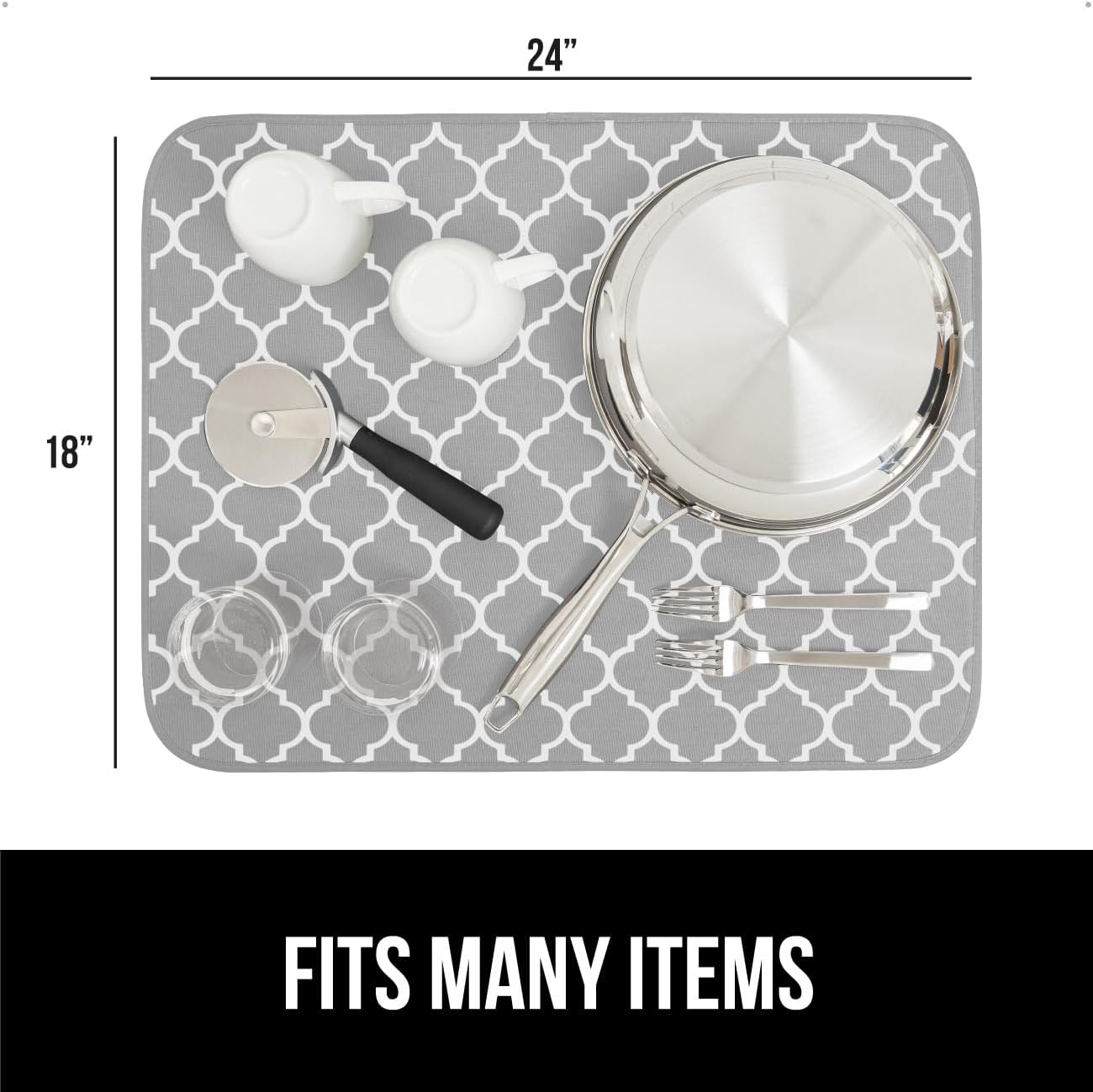 GORILLA GRIP Ultra Water Absorbent Microfiber Dish Drying Mat, 18x24, Quick Dry Thick Mesh, Slip Resistant Pad for Sink Dishes or Under Rack, Kitchen Counter Accessories, Machine Wash Mats, Quatrefoil