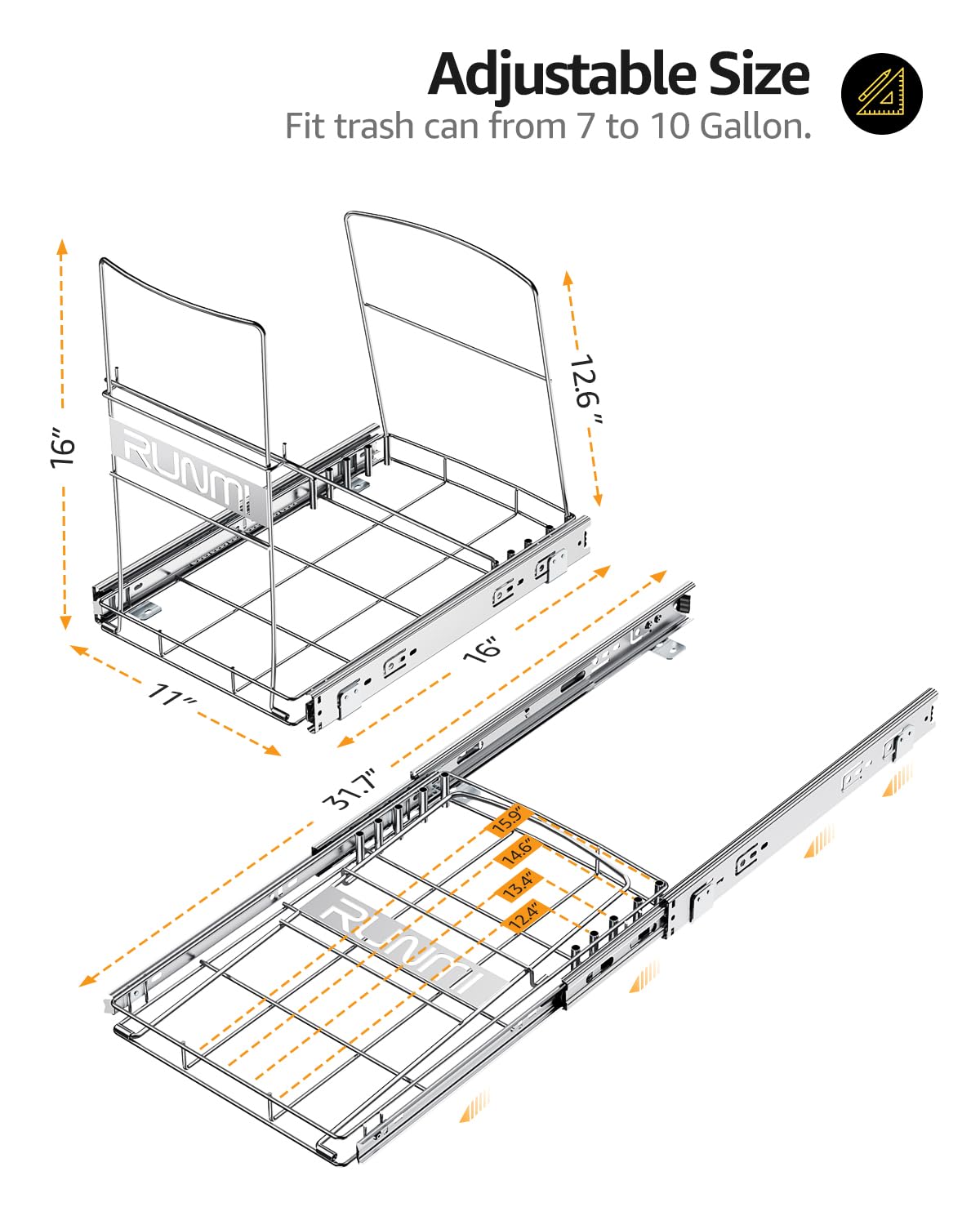 - 【Wide range of use scenarios】 The cabinet garbage can pull-outs are great for storage and can be used in sinks, pantries, bathrooms, laundry rooms, pet rooms, tool rooms, RV,and many other places.