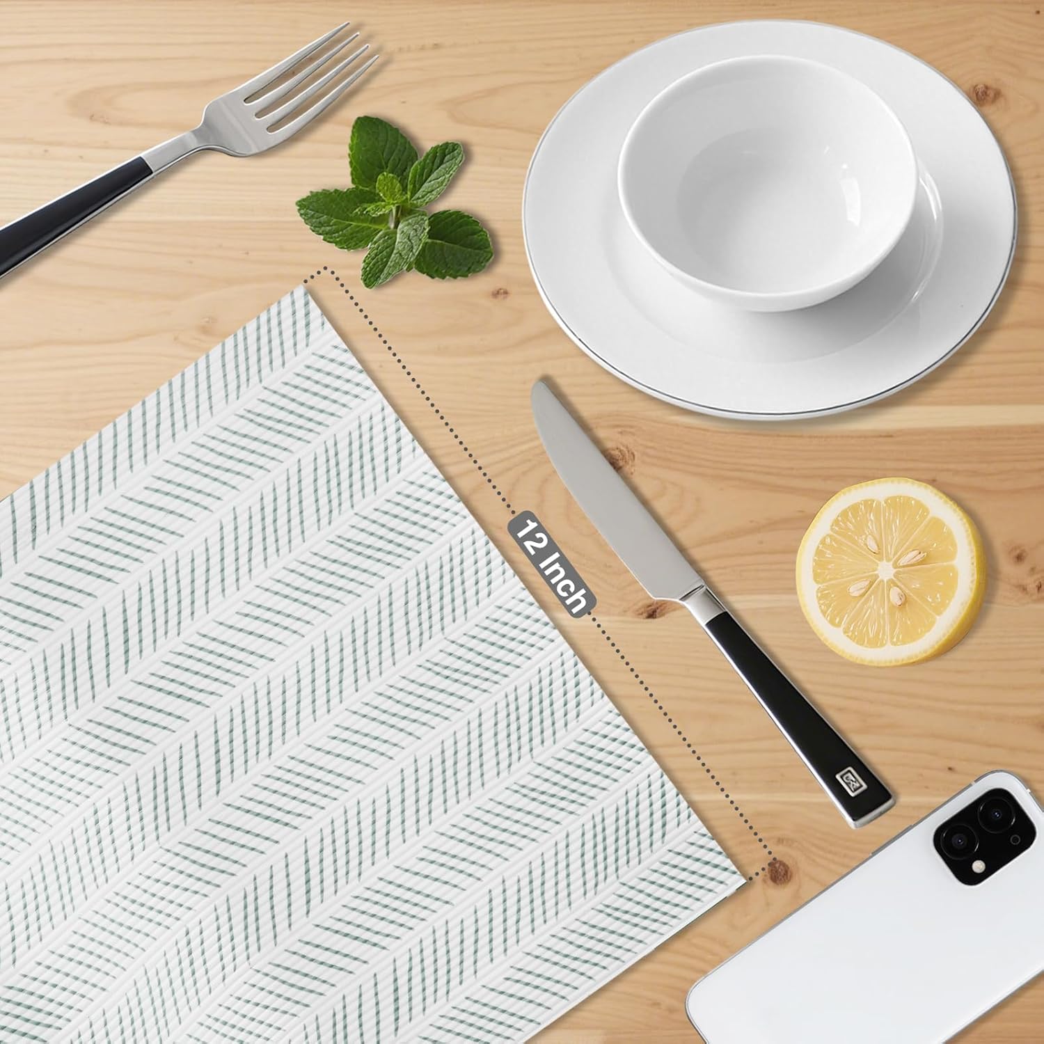 Glotoch Premium Shelf Liners for Kitchen Cabinets,2 Rolls x 12in x 20FT Non-Adhesive Liners for Shelves,Non Slip Waterproof Contact Paper for Drawers Pantry, EVA Cabinet Liner,White Herringbone