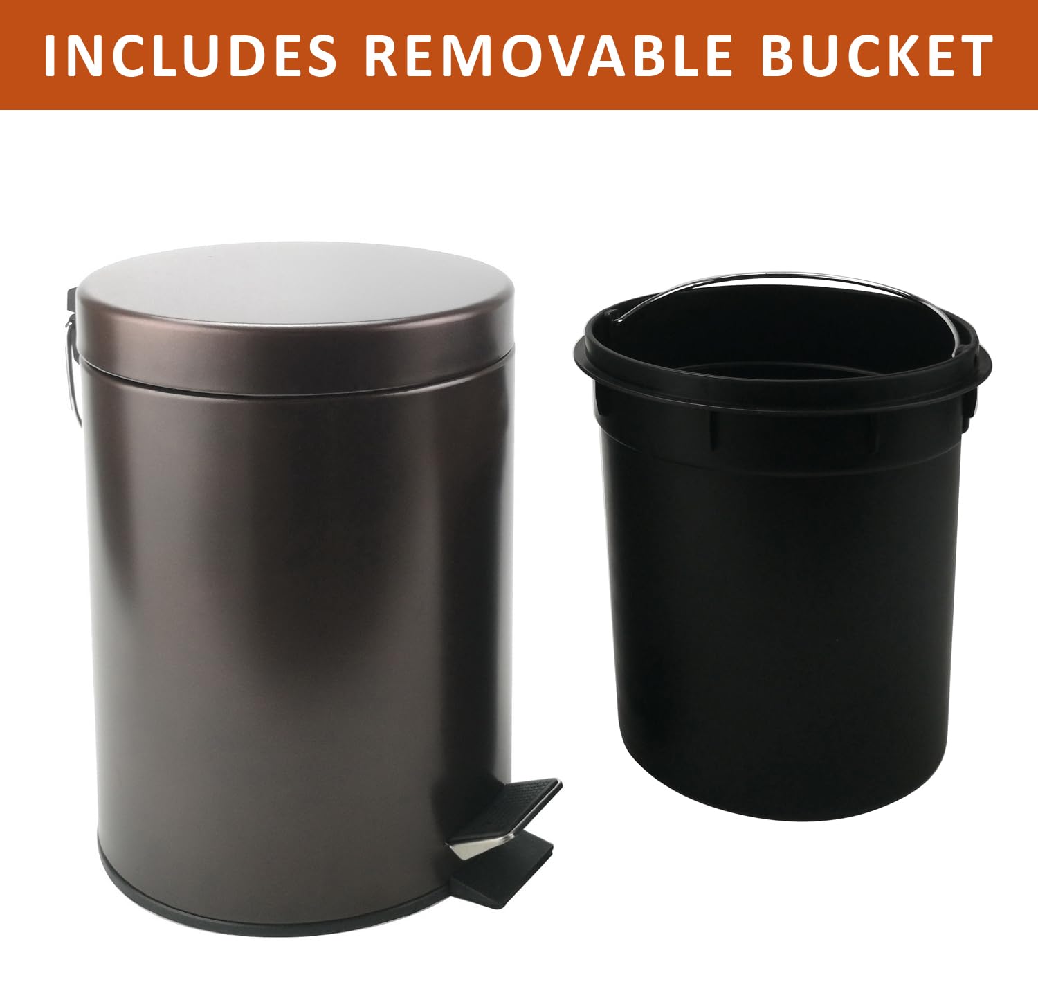 - Removable Liner Bucket: This step trash can includes a removable liner bucket with handle for easy cleaning, making it convenient to maintain a spotless environment. The liner allows for hassle-free disposal in any bathroom trash can, kitchen garbage can, or office garbage can.