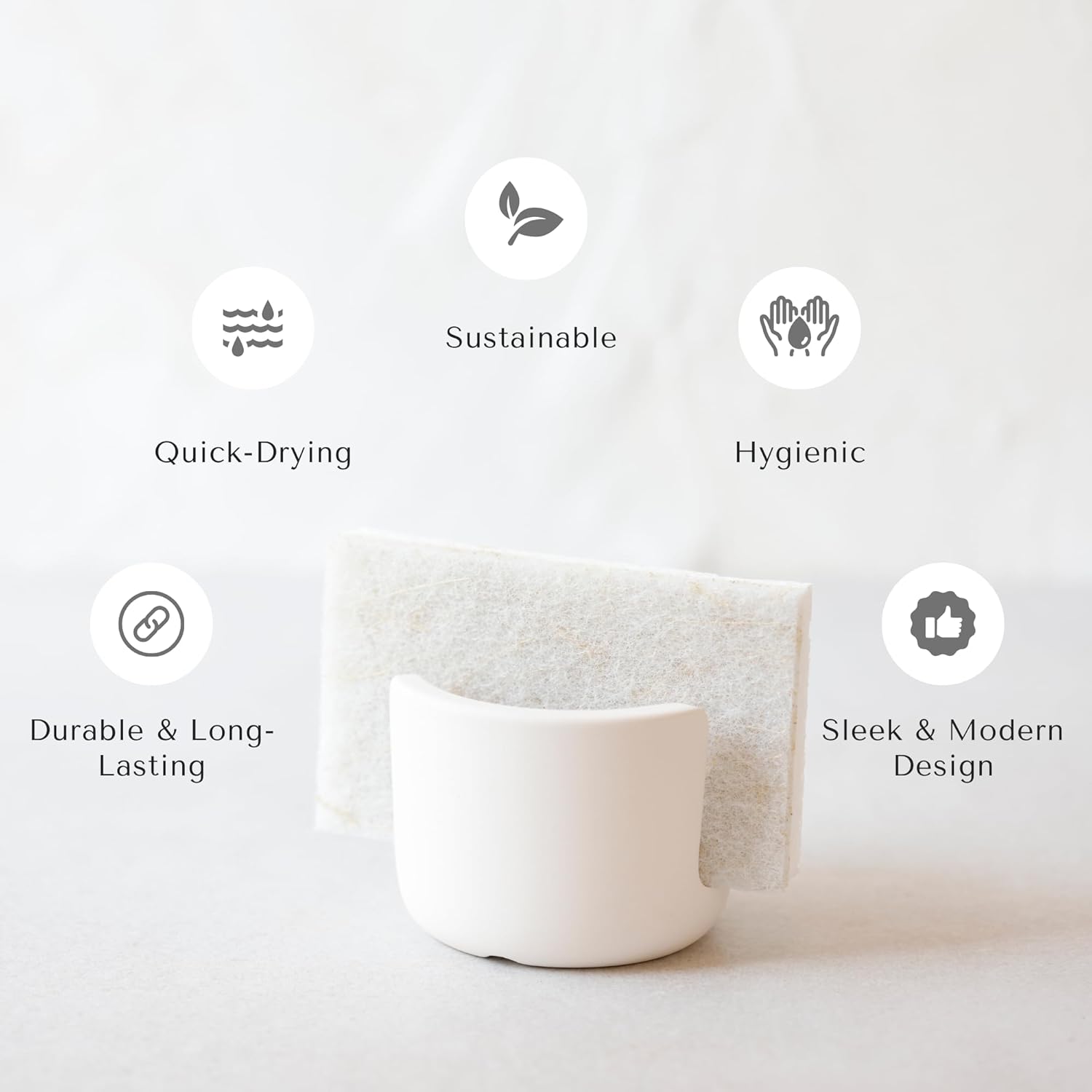 - PREMIUM ABSORBENT MATERIAL: Crafted from High-Quality Diatomaceous Earth, This Sponge Holder Efficiently Absorbs Excess Water, Promoting a Clean and Hygienic Kitchen Environment.