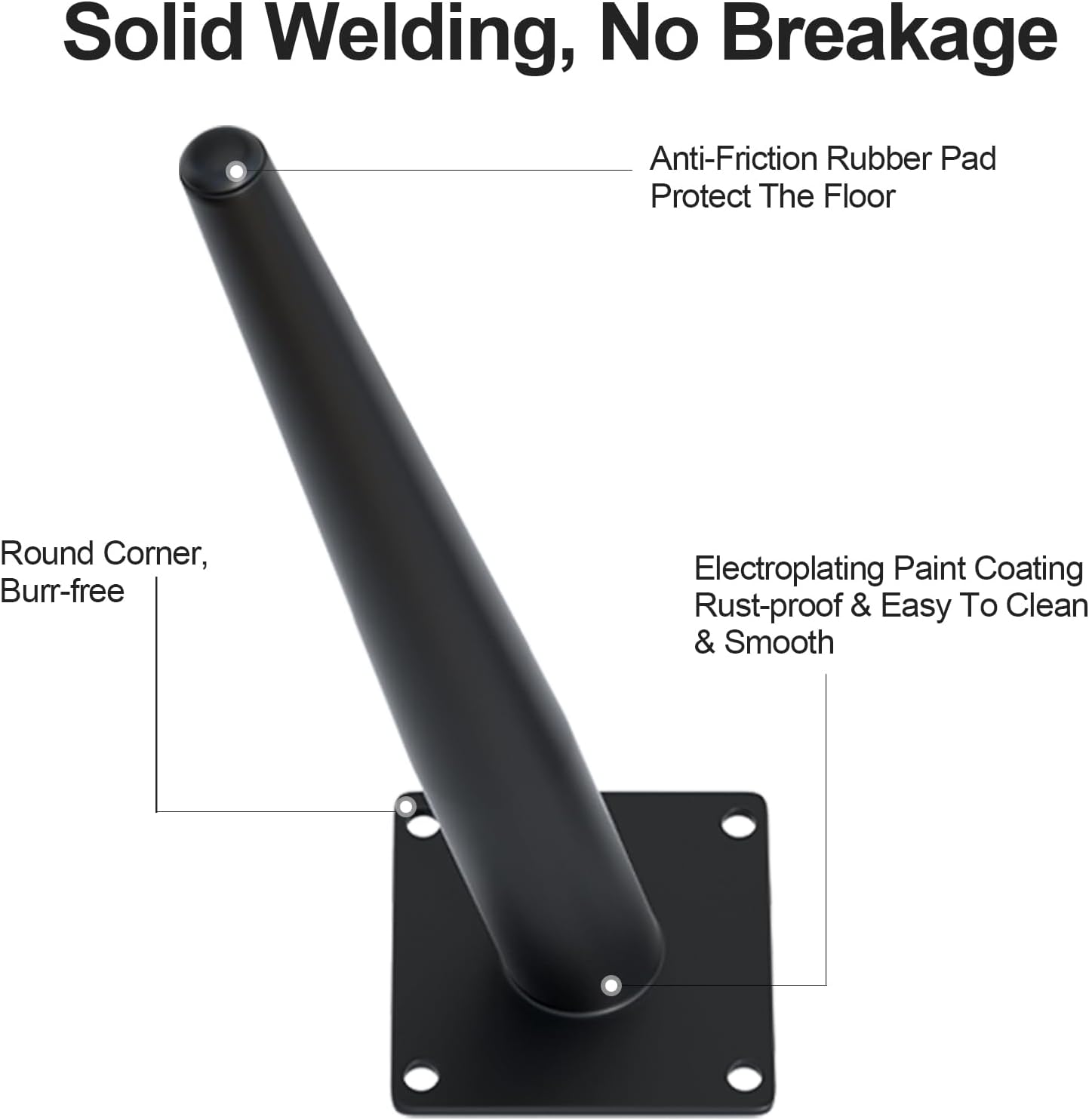 - Durable: The legs are made of 2 mm thick heavy iron. Strong standing ability and load bearing ability. The surface is electroplated, wear-resistant, corrosion-resistant, rust-free and smooth. There is a rubber pad at the bottom of each leg to protect the floor from scratches and reduce noise