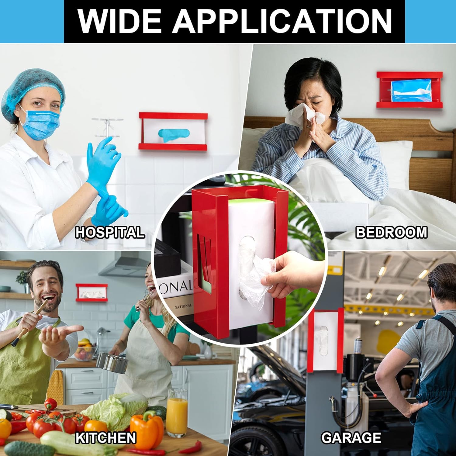 - Widely Applied: wall mounted glove dispenser can be installed on refrigerators, tool boxes, garages, workshops, offices, kitchens and hospitals to hold towels, wipes, paper tissue boxes, which brings large convenience to your life.This product contains magnets. Keep away from children and pets