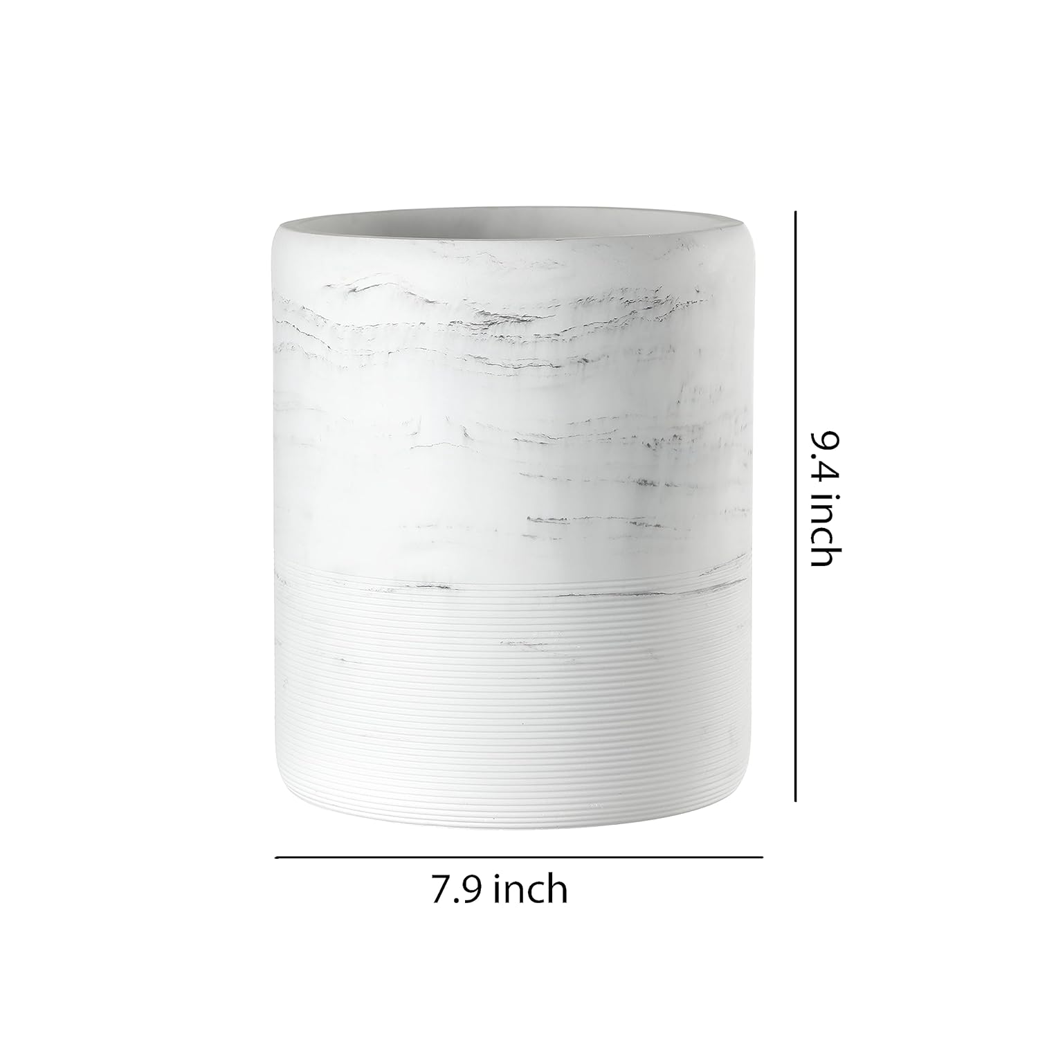 - Marble look round can, This round can has the perfect size. The size and style make this can work in so many places throughout your home, Ideal for home office, bedrooms, craft rooms, dens, and any other room that requires a decorative waste can.