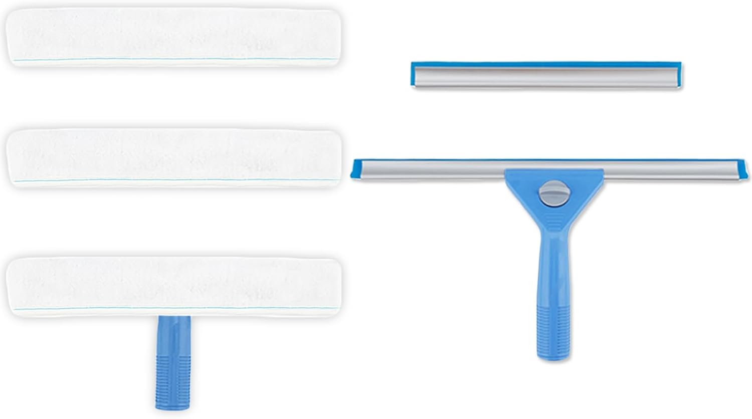 - Value Pack - This window washing kit includes 2 sizes high quality squeegee blades (10'' and 14''), and 3 pieces 12'' highly absorbent microfiber washer refills. It is machine washable and reusable up to 100 times. So you will not have to worry about finding a replacement for a very long time. How to keep your house windows clean & shiny every day? Just add it to your cart. That's a great window cleaner tool for your family.