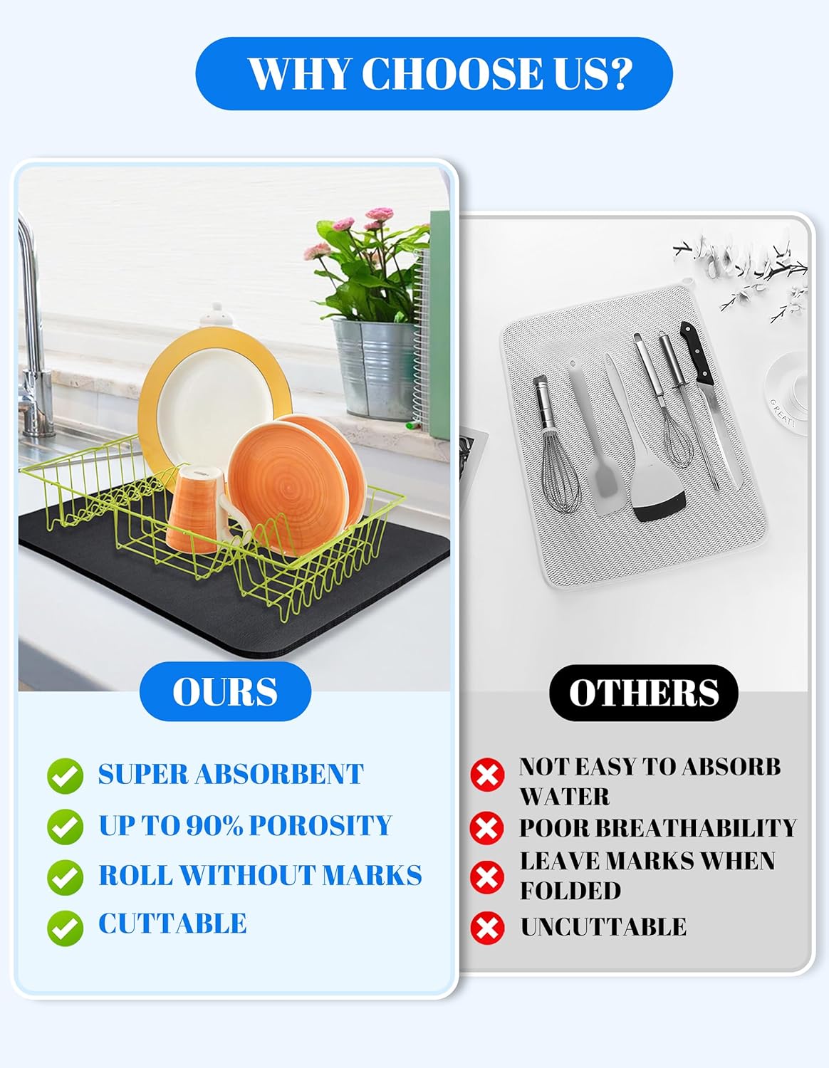 - DISH DRYING MAT: The drying mat is soft and absorbent, Always keep countertops clean and tidy. A practical kitchen mat accessory is definitely worth choosing.