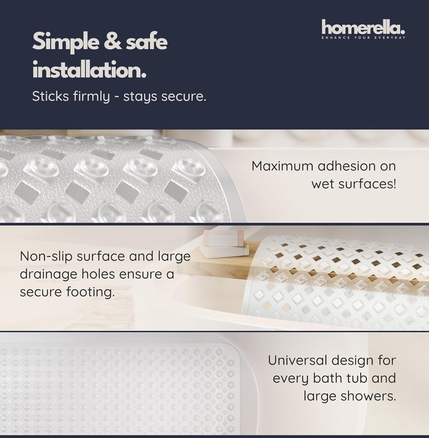 homerella® Bathtub Mat Non Slip 35x16, Incl. Hooks for Drying, Extra Long, 100% BPA Free, Shower Mat Non Slip Anti Mold, Machine Washable, Shower Mats for Inside Shower Mildew Resistant