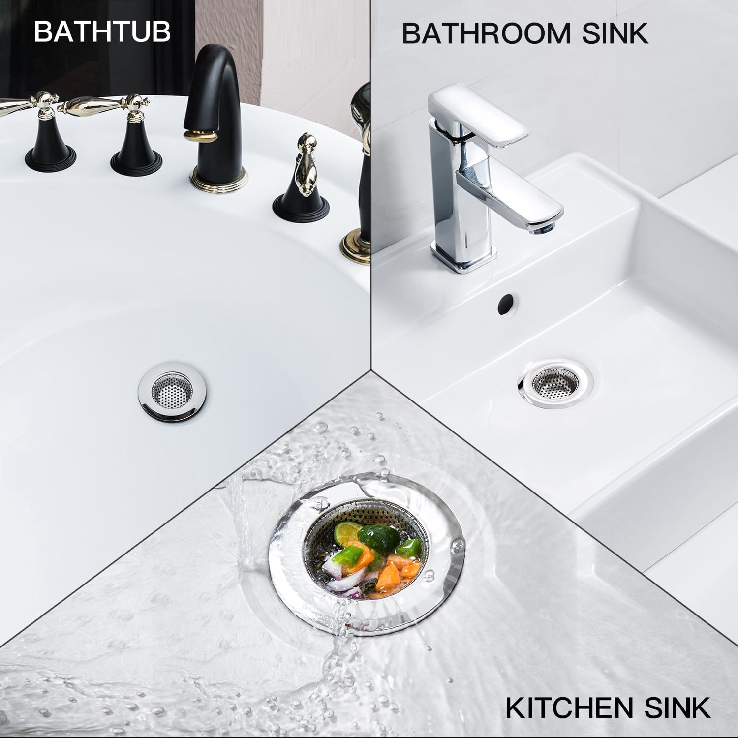 4 Pack Heavy Duty Stainless Steel Kitchen Sink Drain Strainer, Bathroom Hair Catcher Shower Drain Cover, Sink Tub Drain Stopper, Wash Basin Floor Drain, 2.1 to 4.5 Inch Diameter Rim