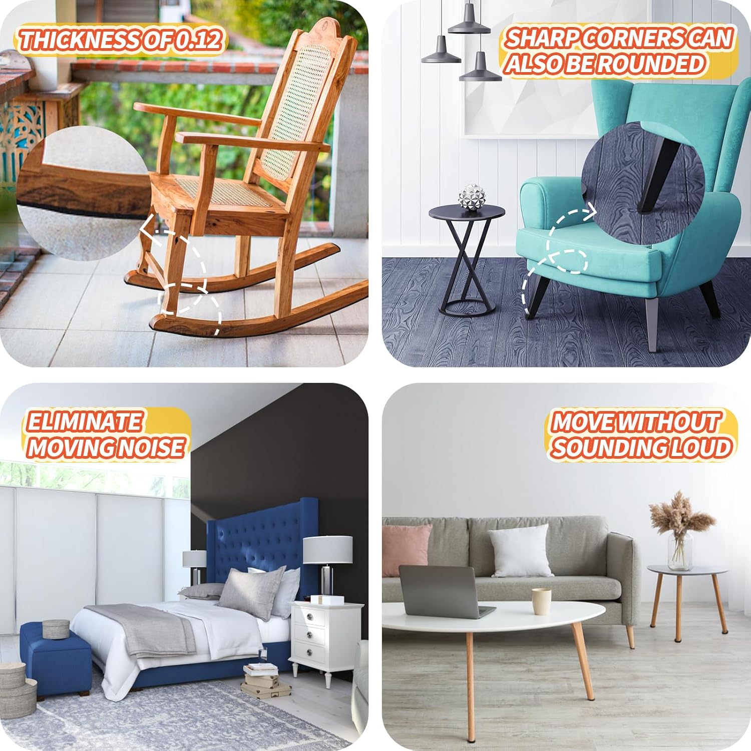 - WIDE APPLICATIONS - Suitable for tile, laminate, hardwood, carpet and any type of floor to prevent floor damage with furniture fixed. It also applies to any furniture and appliances, including chairs, sofas, cabinets, drawers, doors, laptops, keyboards, electronic devices, vases, etc.