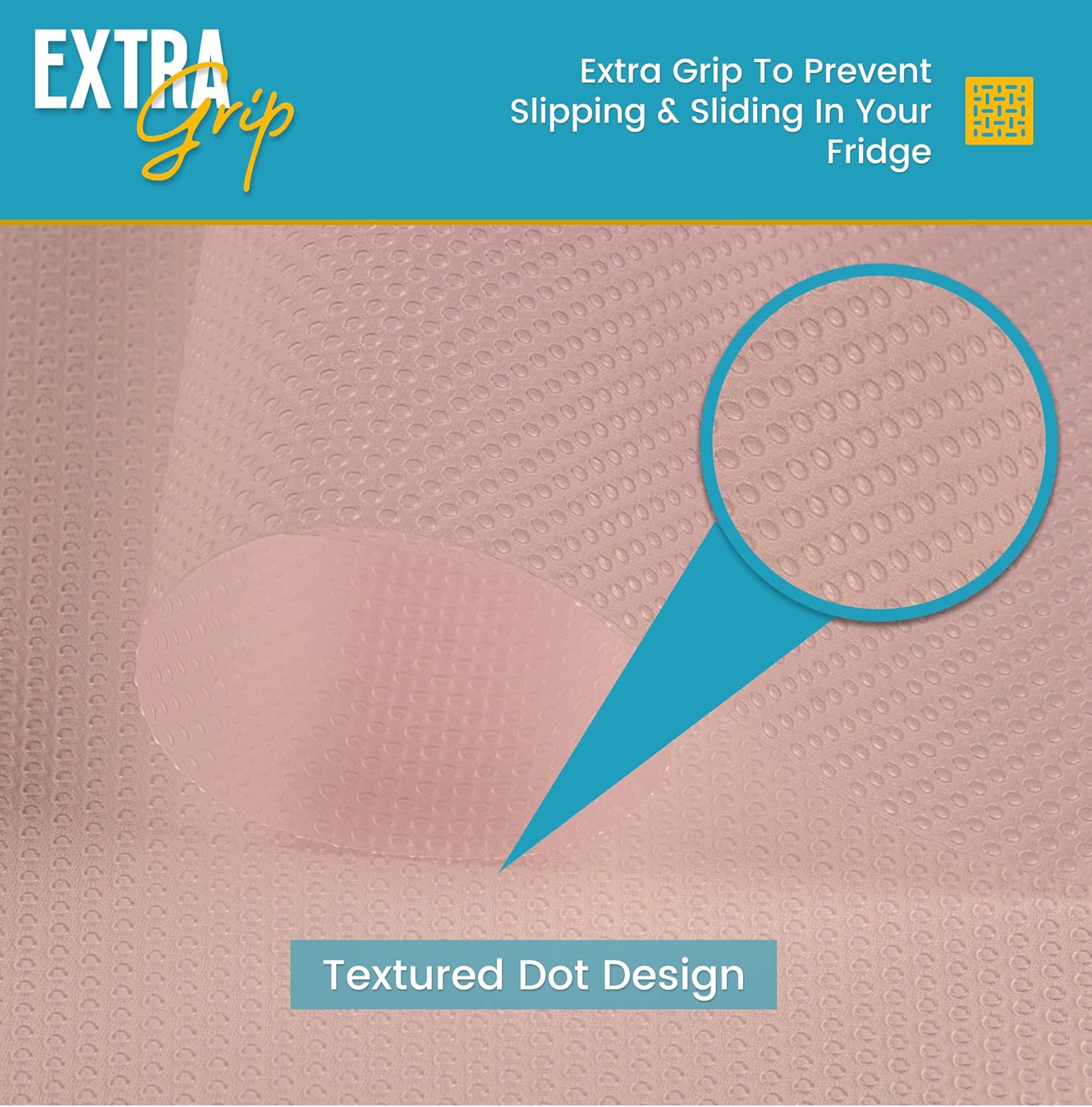 - SUPERIOR QUALITY: Our refrigerator mats are BPA-free, crafted from premium EVA for safe, long-lasting use. The dot-textured design grips shelves and prevents slipping, making them great fridge liners or refrigerator shelf liners. The smooth, non-adhesive underside removes easily for quick cleaning—no residue left behind!